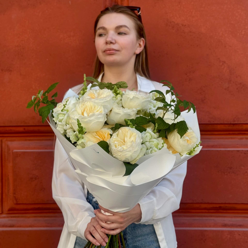 - An individual approach to the client is not an empty phrase for us. This means that the bouquet is created taking into account the style and image of the intended owner.