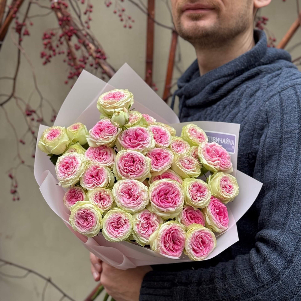 - How to order 7 branches of Gelato spray peony rose in a bouquet «Berry Ice cream»? ❯