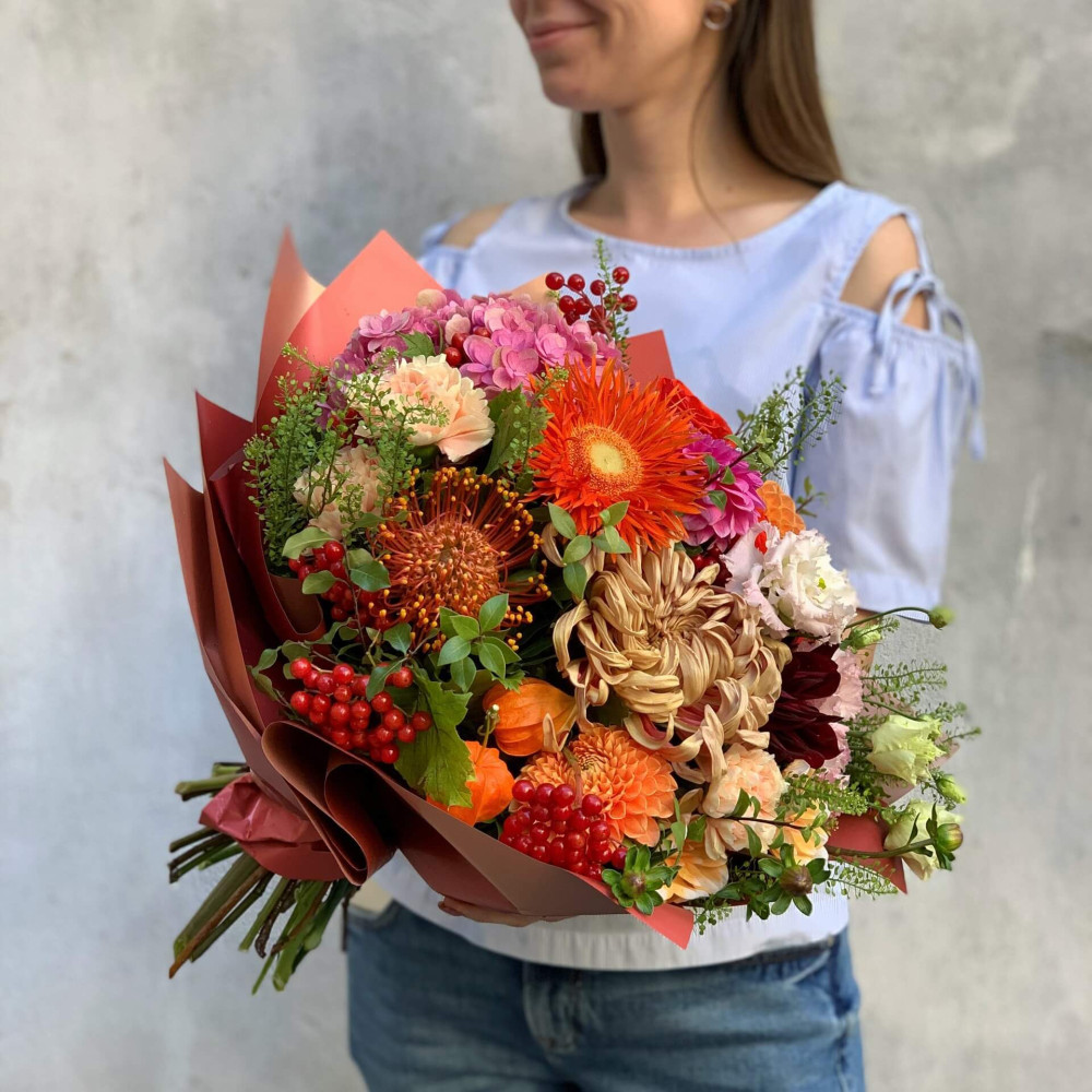 - An individual approach to the client is not an empty phrase for us. This means that the bouquet is created taking into account the style and image of the intended owner.