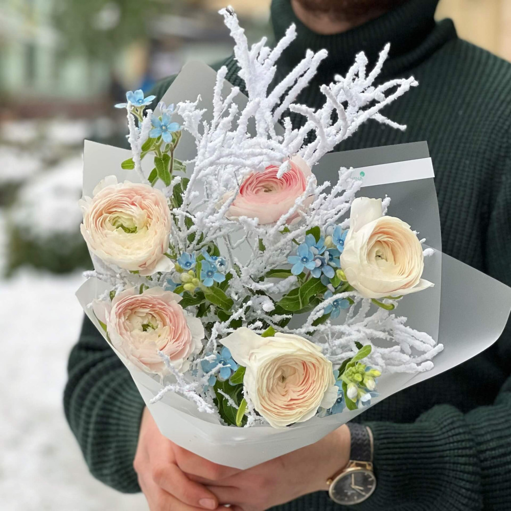- How to order Bouquet «Snowy ranunculi»? ❯