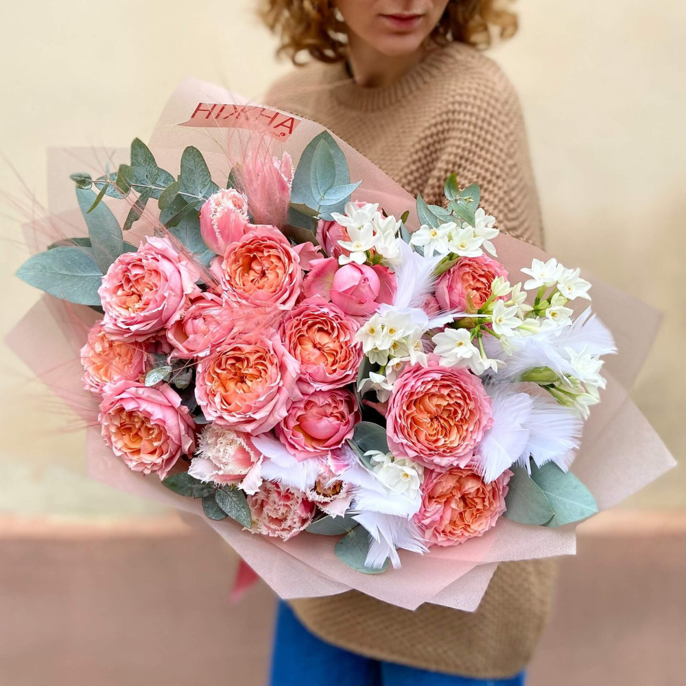 - An individual approach to the client is not an empty phrase for us. This means that the bouquet is created taking into account the style and image of the intended owner.