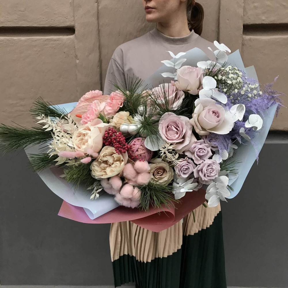 - An individual approach to the client is not an empty phrase for us. This means that the bouquet is created taking into account the style and image of the intended owner.