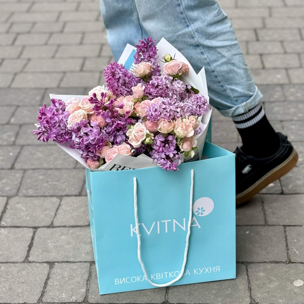 - Bouquets from Kvitna are delivered in branded packaging. Please remove the packaging before placing the flowers in a vase. Do not cut the ribbon that ties the bouquet — it helps preserve its original shape.