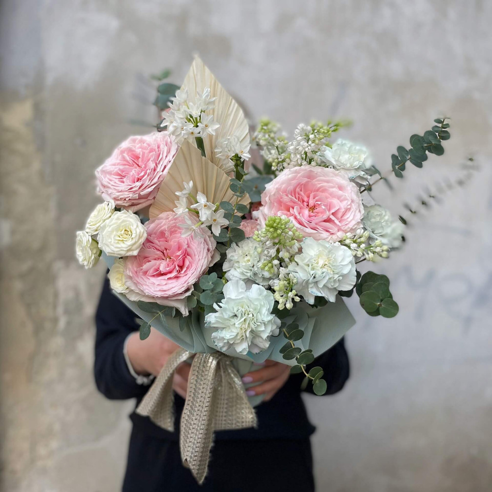 - An individual approach to the client is not an empty phrase for us. This means that the bouquet is created taking into account the style and image of the intended owner.