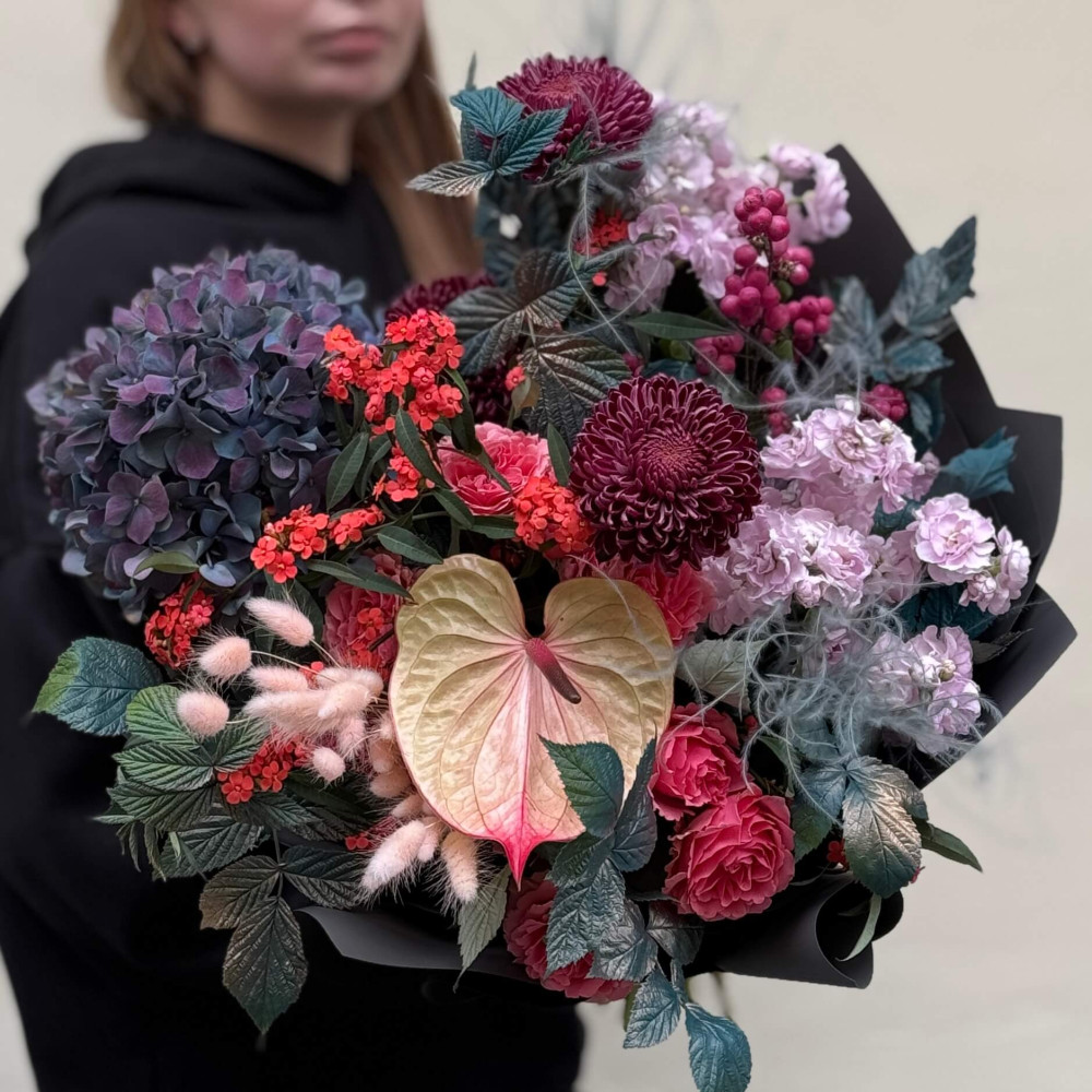 - An individual approach to the client is not an empty phrase for us. This means that the bouquet is created taking into account the style and image of the intended owner.