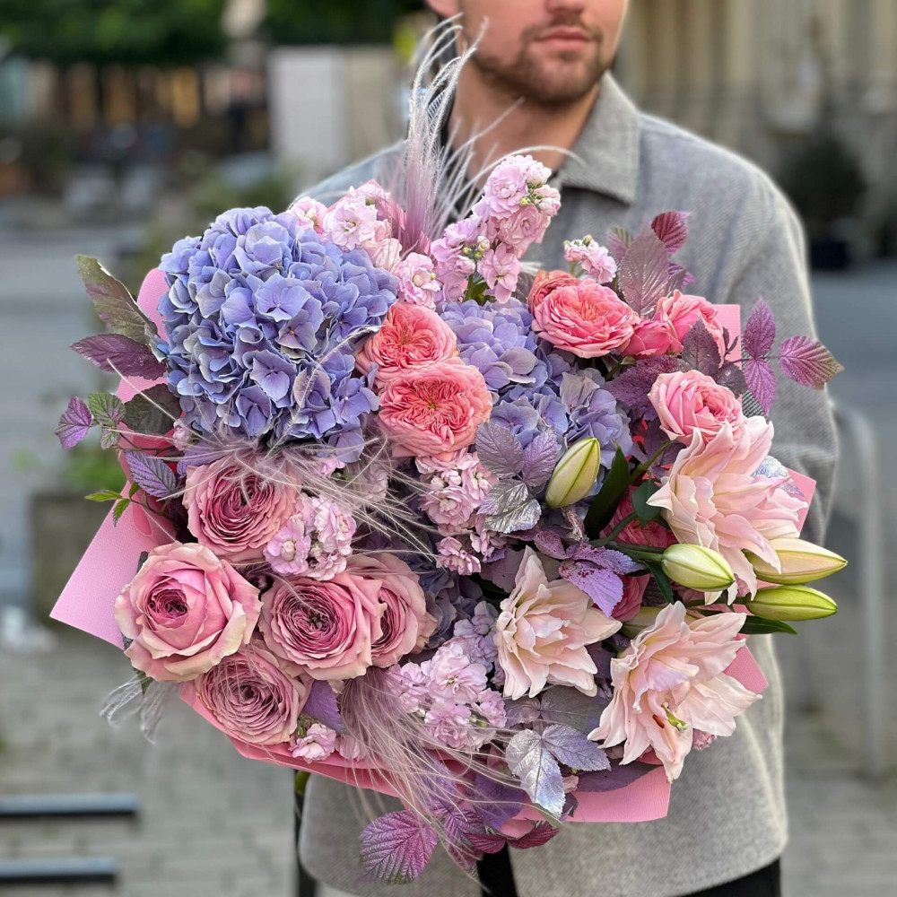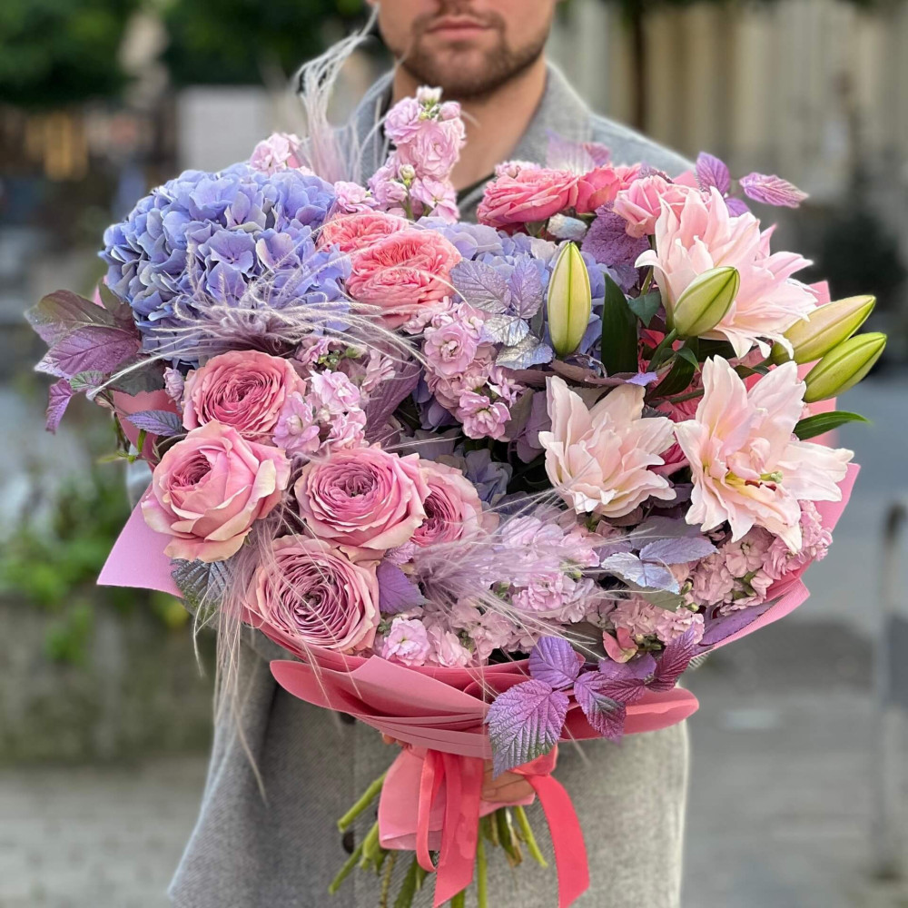 - How to order Delicate voluminous pink and lilac bouquet «Floral Poetry»? ❯