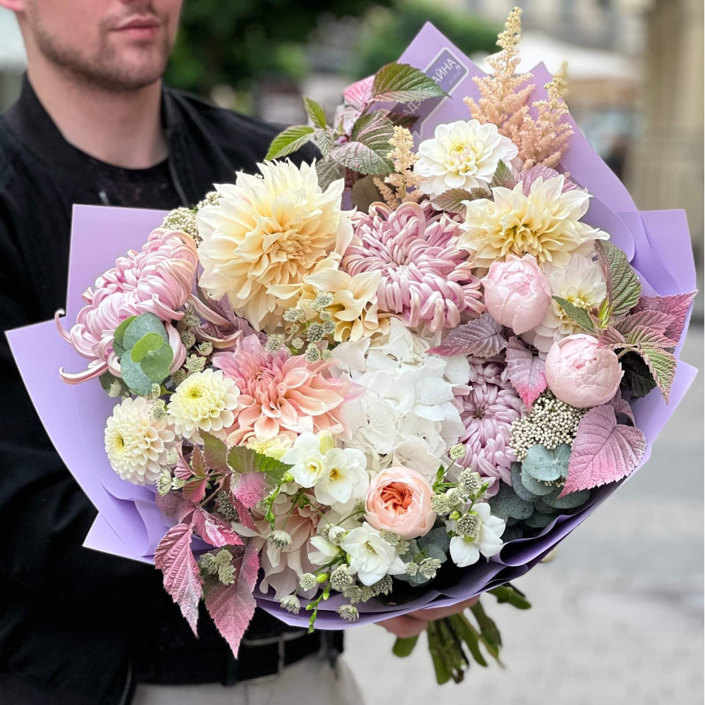 - An individual approach to the client is not an empty phrase for us. This means that the bouquet is created taking into account the style and image of the intended owner.