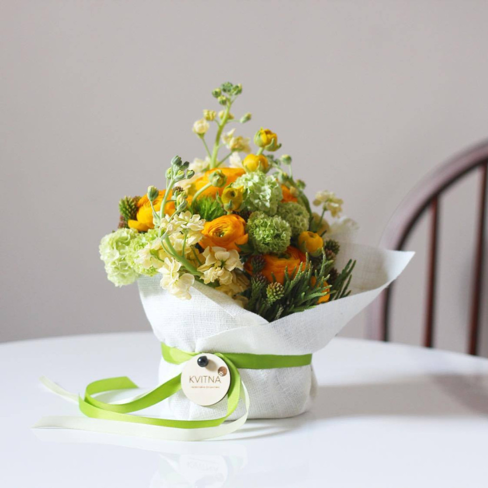May your flower arrangement from Kvitna — whether in a box, basket, or sheaf — delight you and bring you joy for as long as possible!