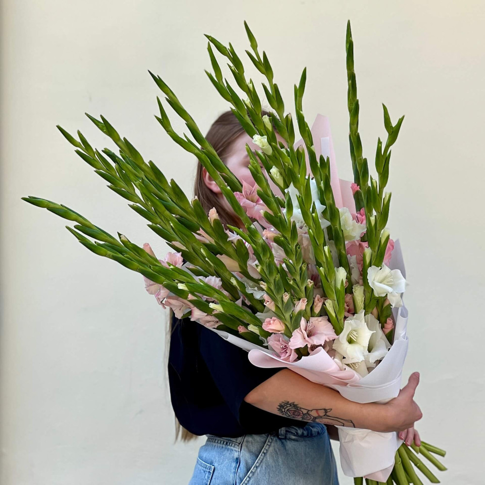 - How to order Delicate light bouquet of 23 tender gladioluses «Glistening Pink Radiance»? ❯