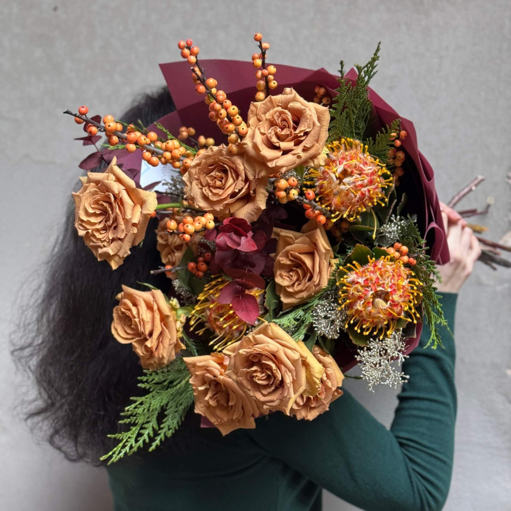 - An individual approach to the client is not an empty phrase for us. This means that the bouquet is created taking into account the style and image of the intended owner.