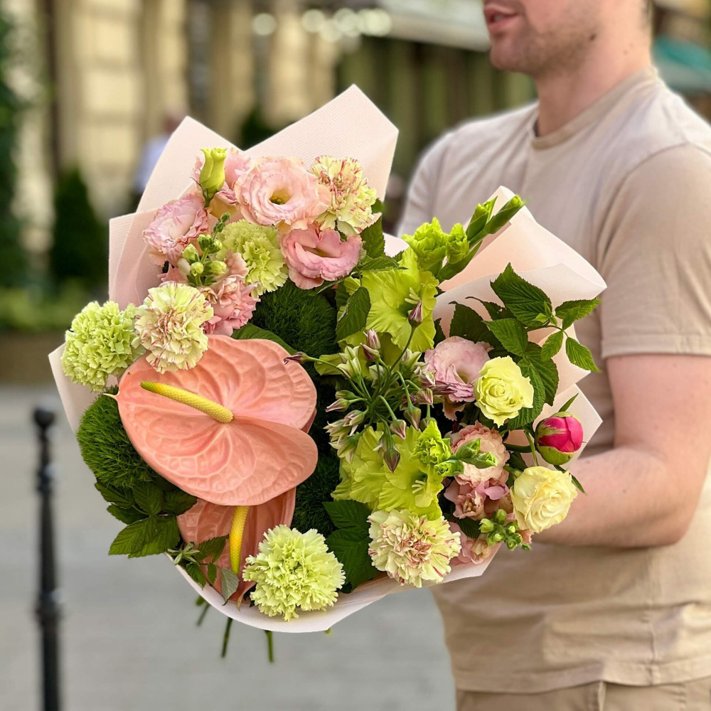 - How to order Exquisite bouquet with anthuriums «Peach Shine»? ❯