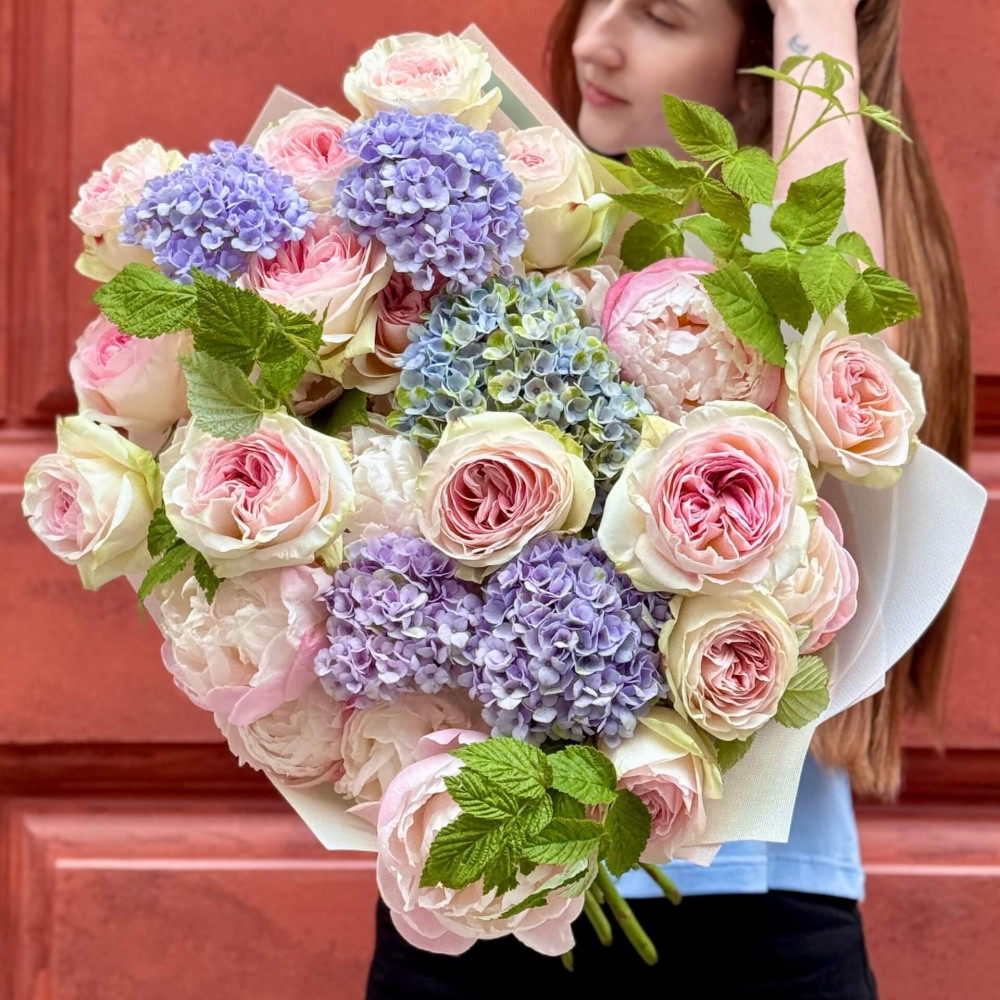Exquisite bouquet with peonies and peony-shaped roses «Dawn Dream»