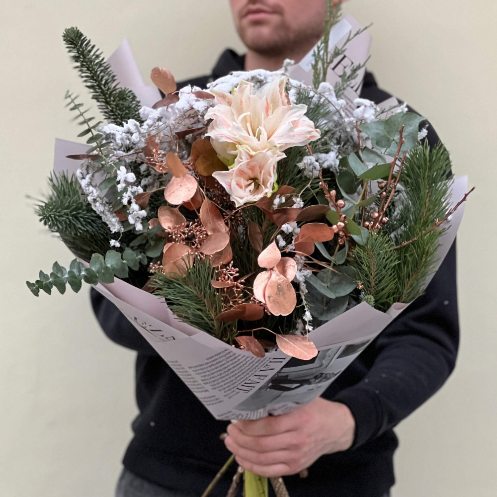 Winter bouquet with delicate amaryllis «Enchanted Evening»