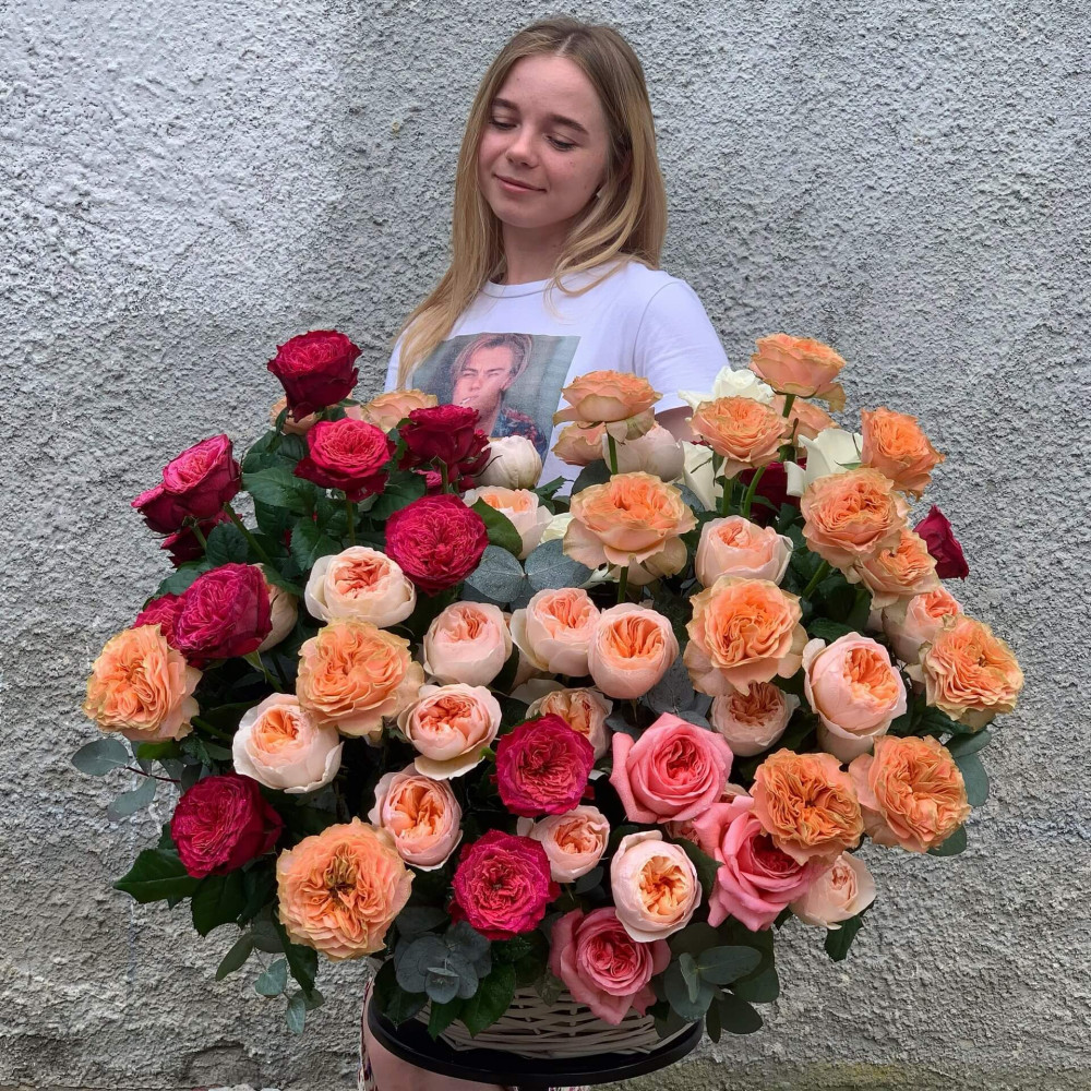 - Як замовити 101 піоновидна троянда у кошику «Океан обійм»? ❯