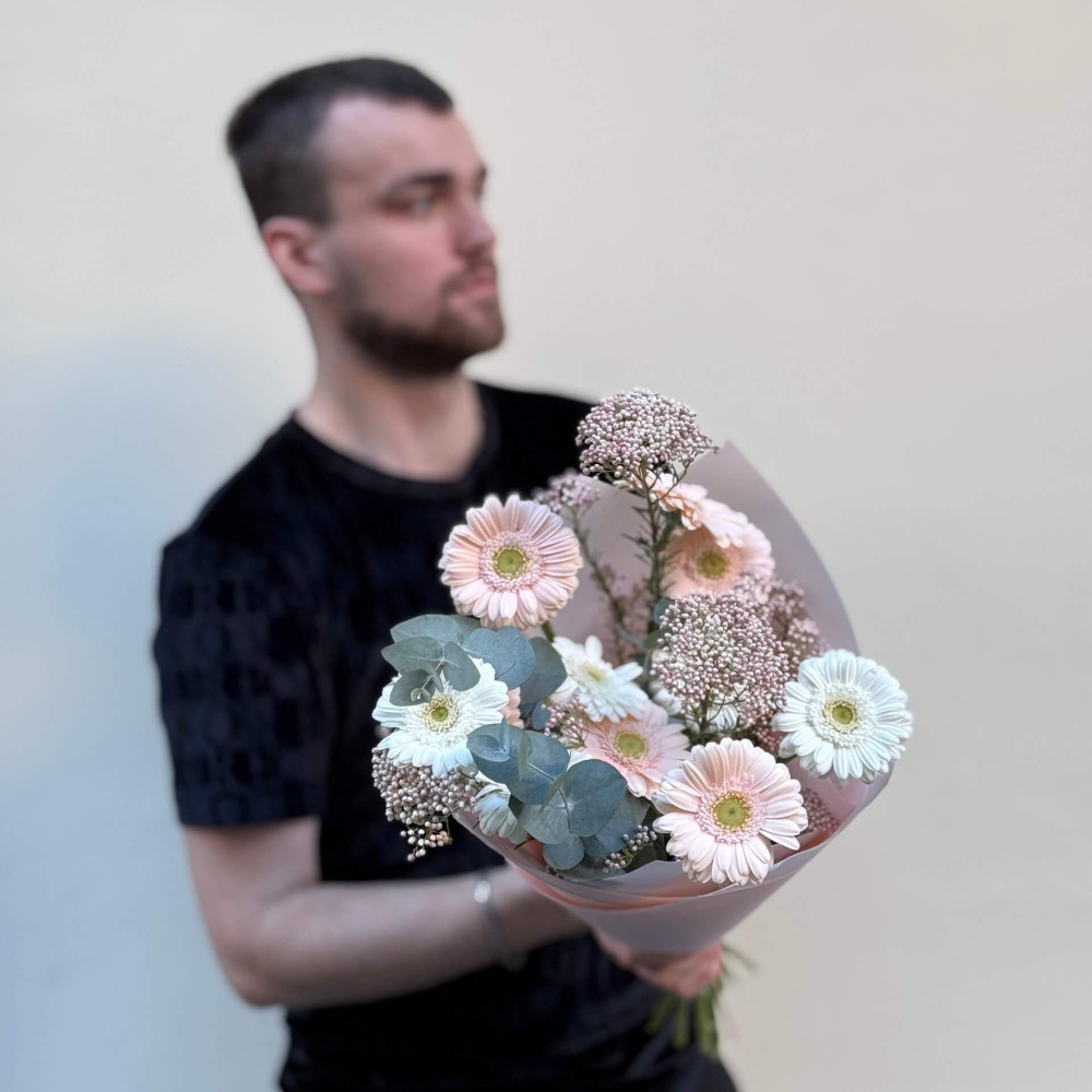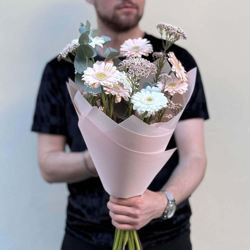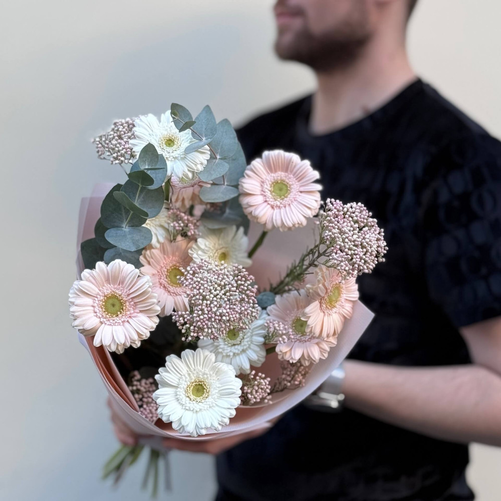 - Як замовити 11 гербер сортів Lobby та Alix Noor у букеті «Пелюсткова ніжність»? ❯