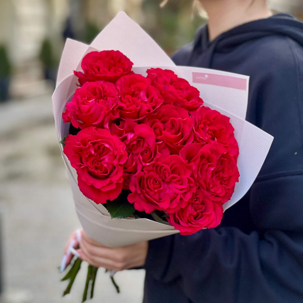 - Як замовити 11 піоновидних троянд Mayra у букеті «Малиновий оксамит»? ❯