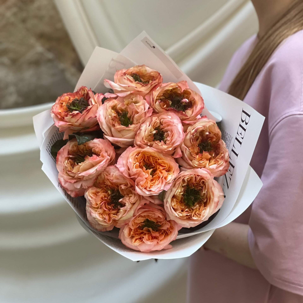 - Як замовити 11 півонієвидних троянд Melon X-Pression у букеті «Ароматна диня»? ❯