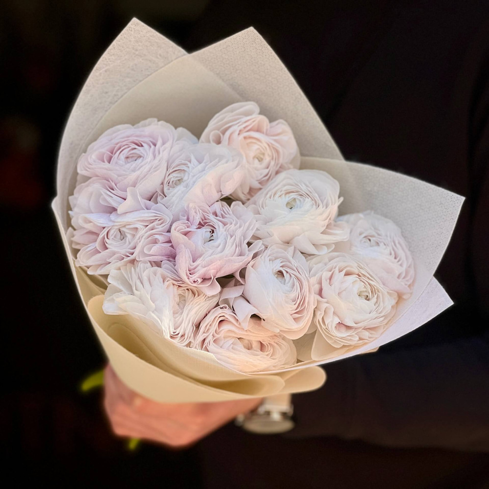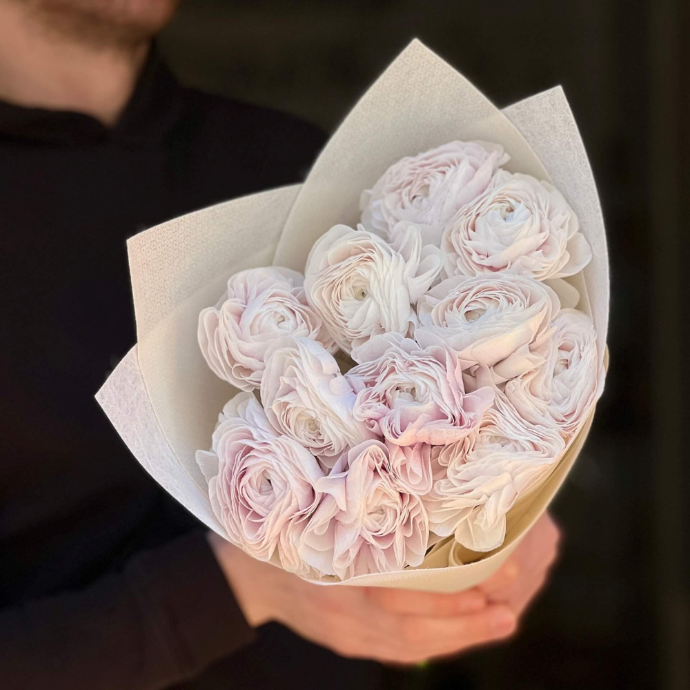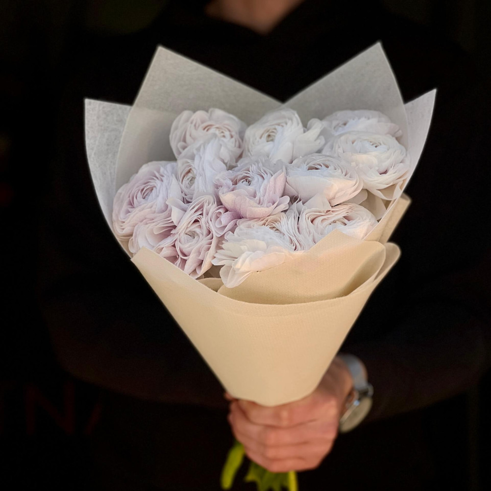 - Як замовити 11 ранункулюсів сорту Clooney Nebbia у букеті «Лавандовий туман»? ❯