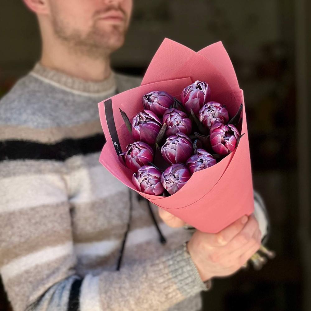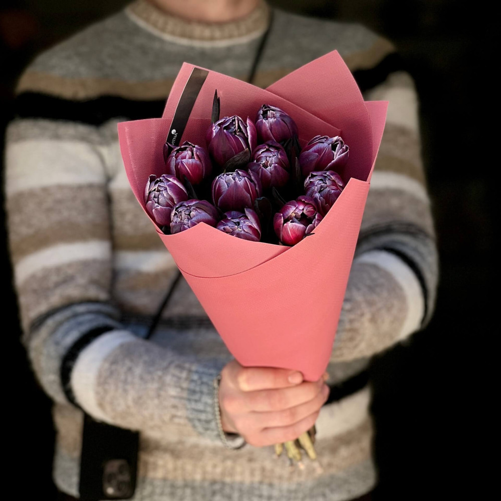 Як замовити 11 тюльпанів Double Bohemian у букеті «Богемська розкіш»?