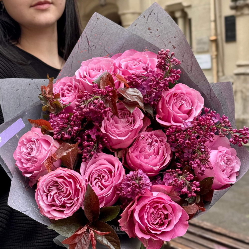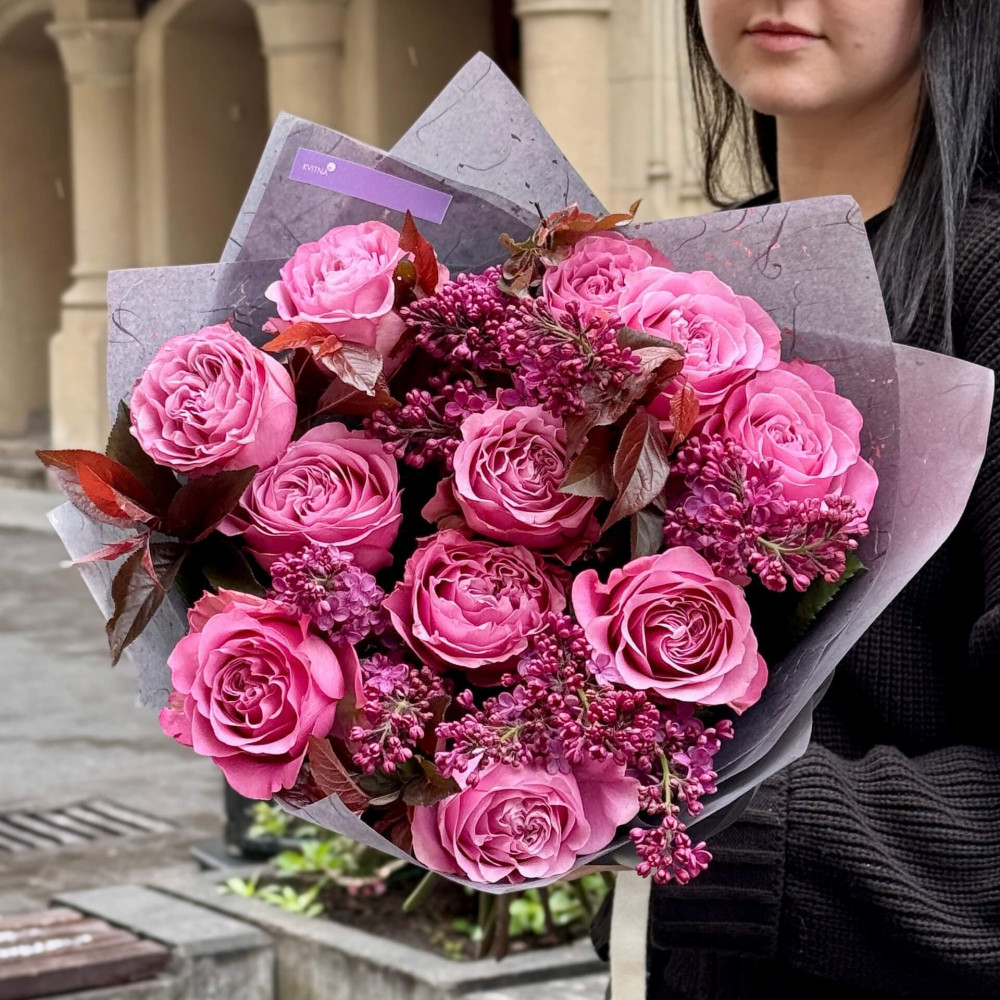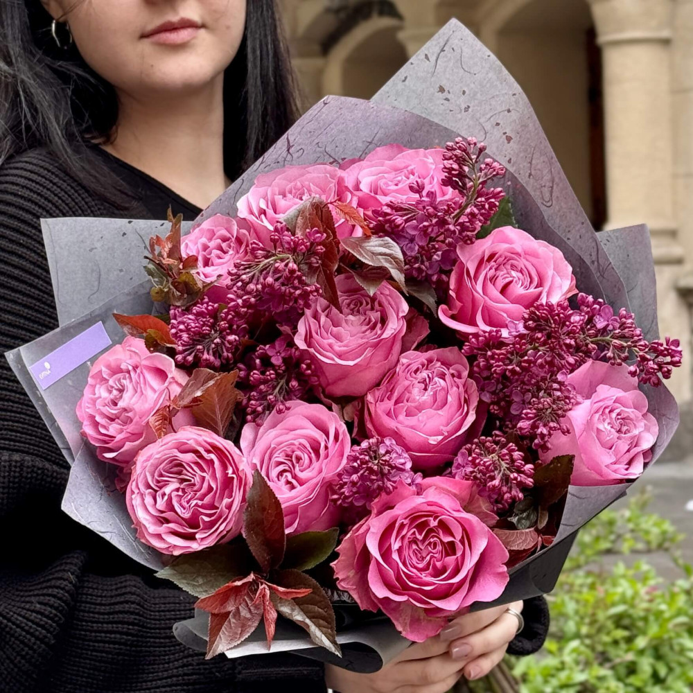 Квіти: Троянда піоновидна Queens Crown - 11 шт., Бузок