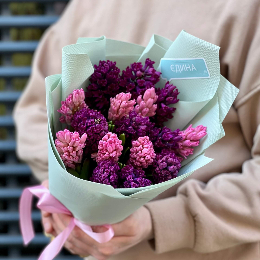 - Як замовити 15 гіацинтів мікс у букеті «Мамина радість»? ❯