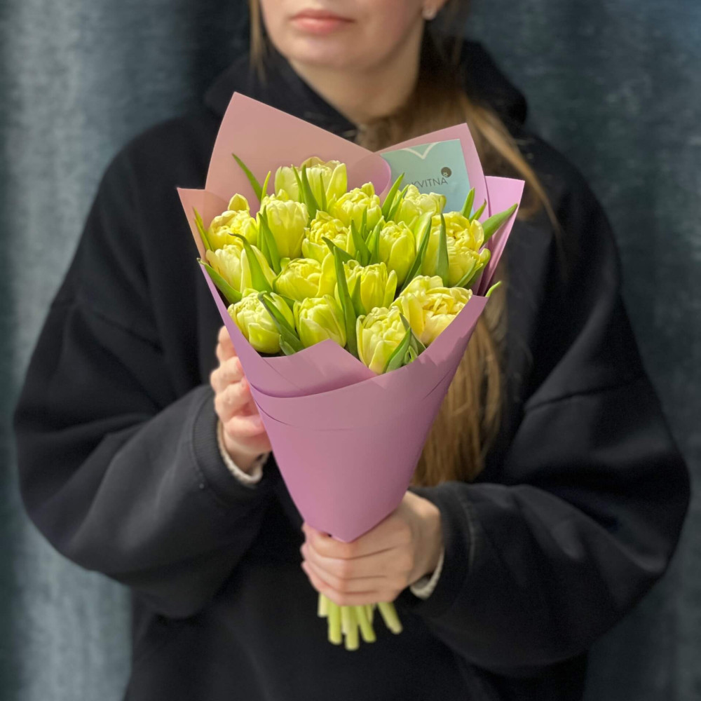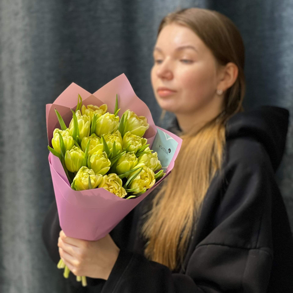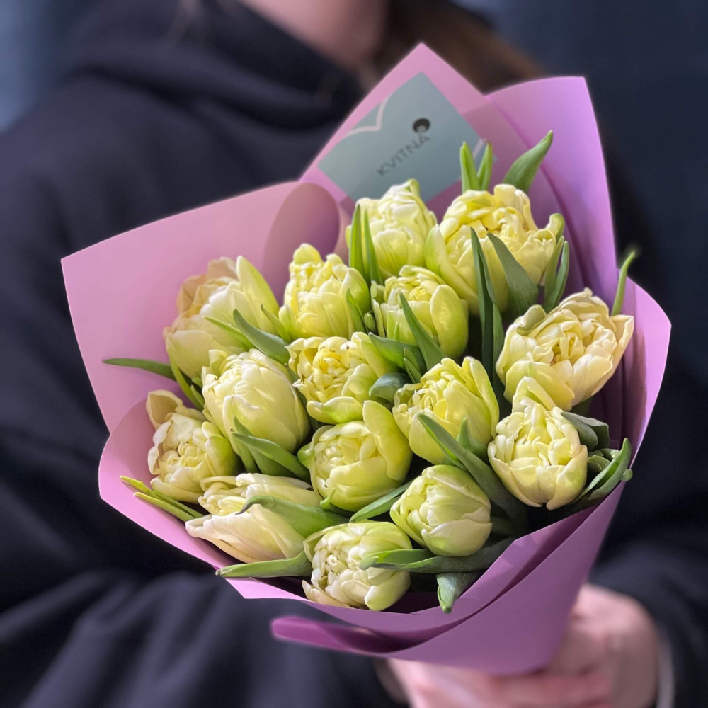 - Як замовити 15 півонієвидних тюльпанів Avant Garde у букеті «Лаймові льодяники»? ❯
