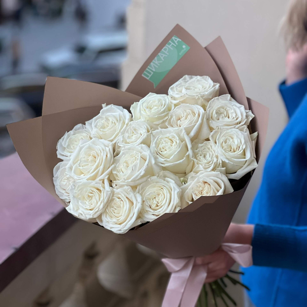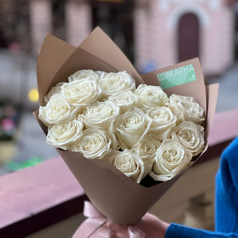 FAQ по 17 білосніжних троянд Playa Blanca у букеті «Промені почуттів»