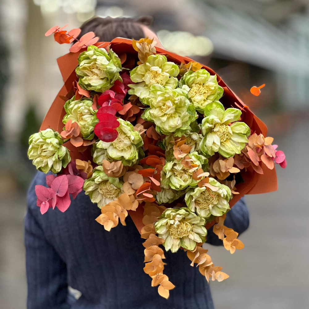 - Як замовити 17 неймовірних троянд сорту Veggie у букеті «Зелений лотос»? ❯