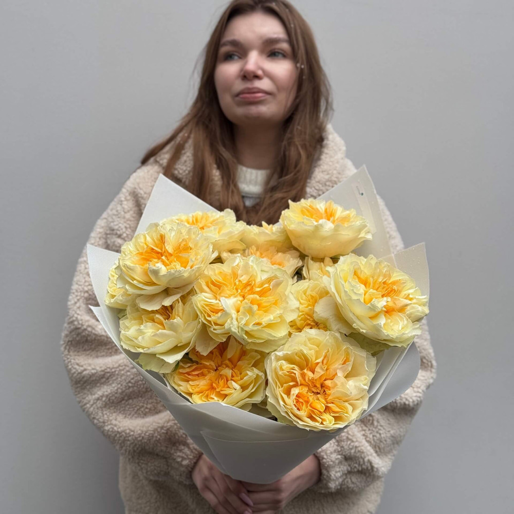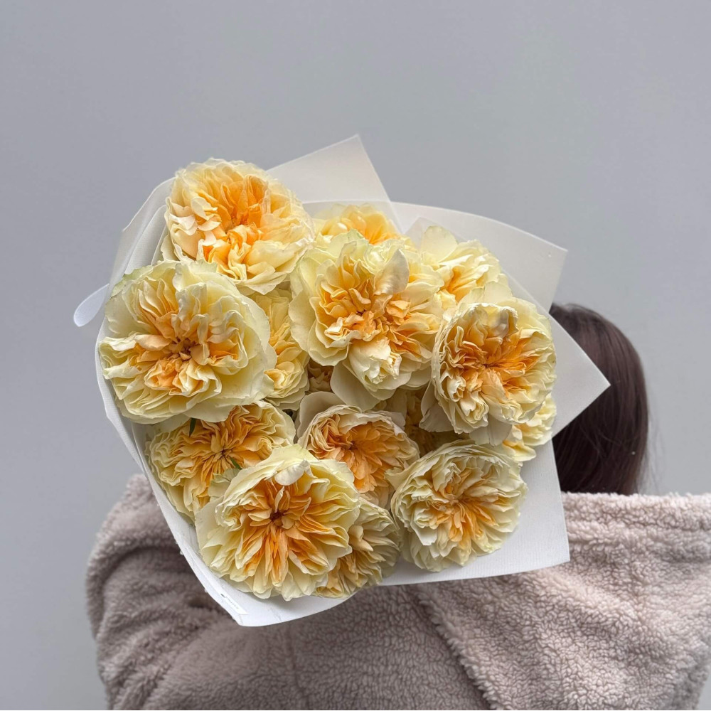 - Як замовити 17 розкішних півонієвидних троянд Antonia Garden у букеті «Лимонний курд»? ❯