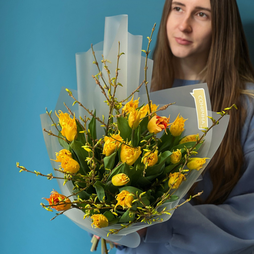 - Як замовити 19 французьких тюльпанів у букеті «Лимонні смаколики»? ❯
