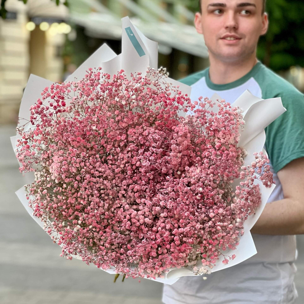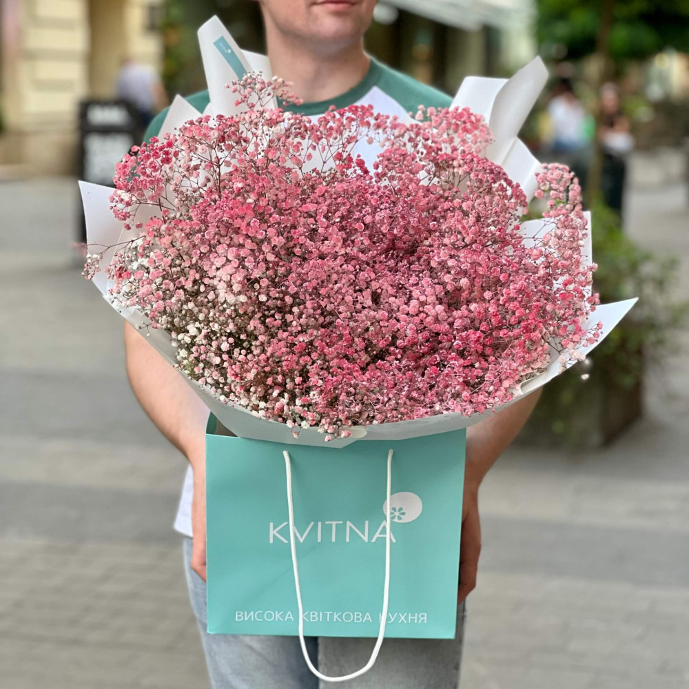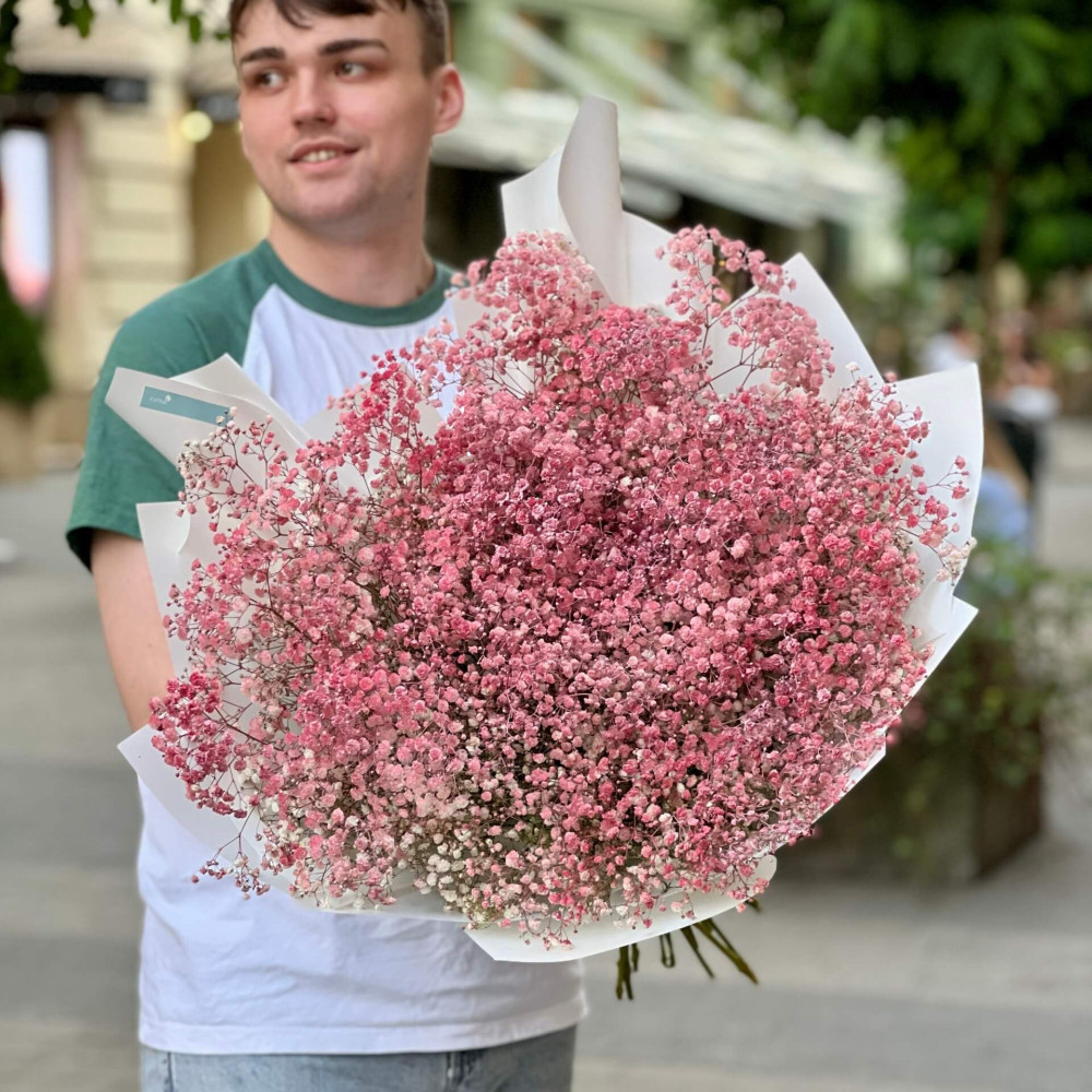- Як замовити 19 гілок гіпсофіли у букеті «Світанок Барбі»? ❯