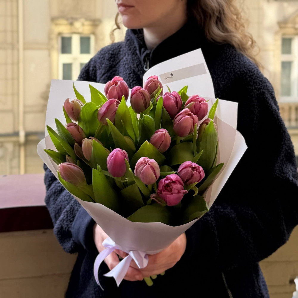 - Як замовити 19 піоновидних тюльпанів у букеті «Весна вже тут»? ❯