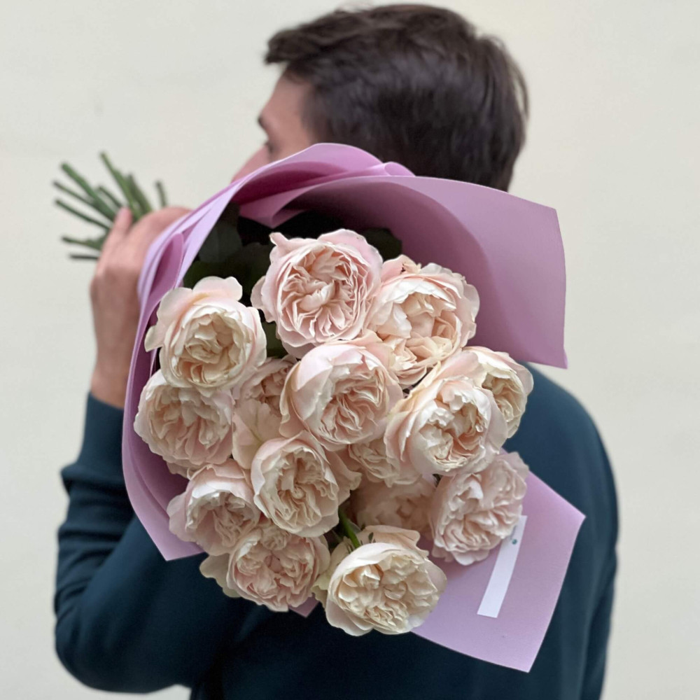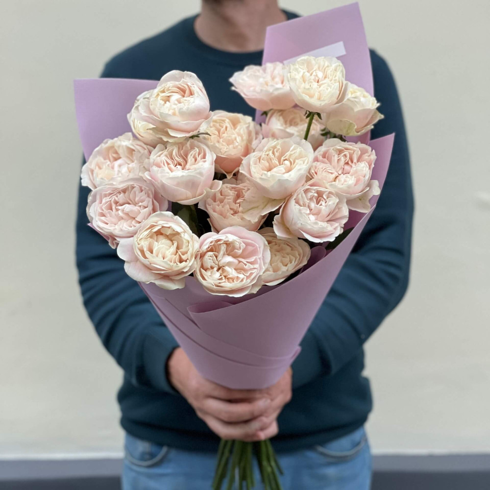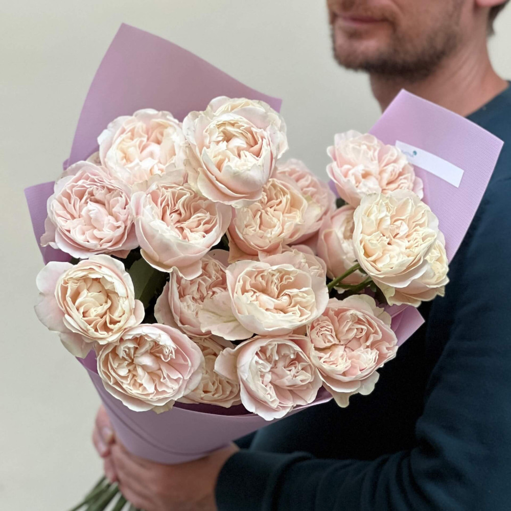 - Як замовити 19 вишуканих півонієвидних троянд сорту Chiffon у букеті «Мерехтливе сяйво»? ❯