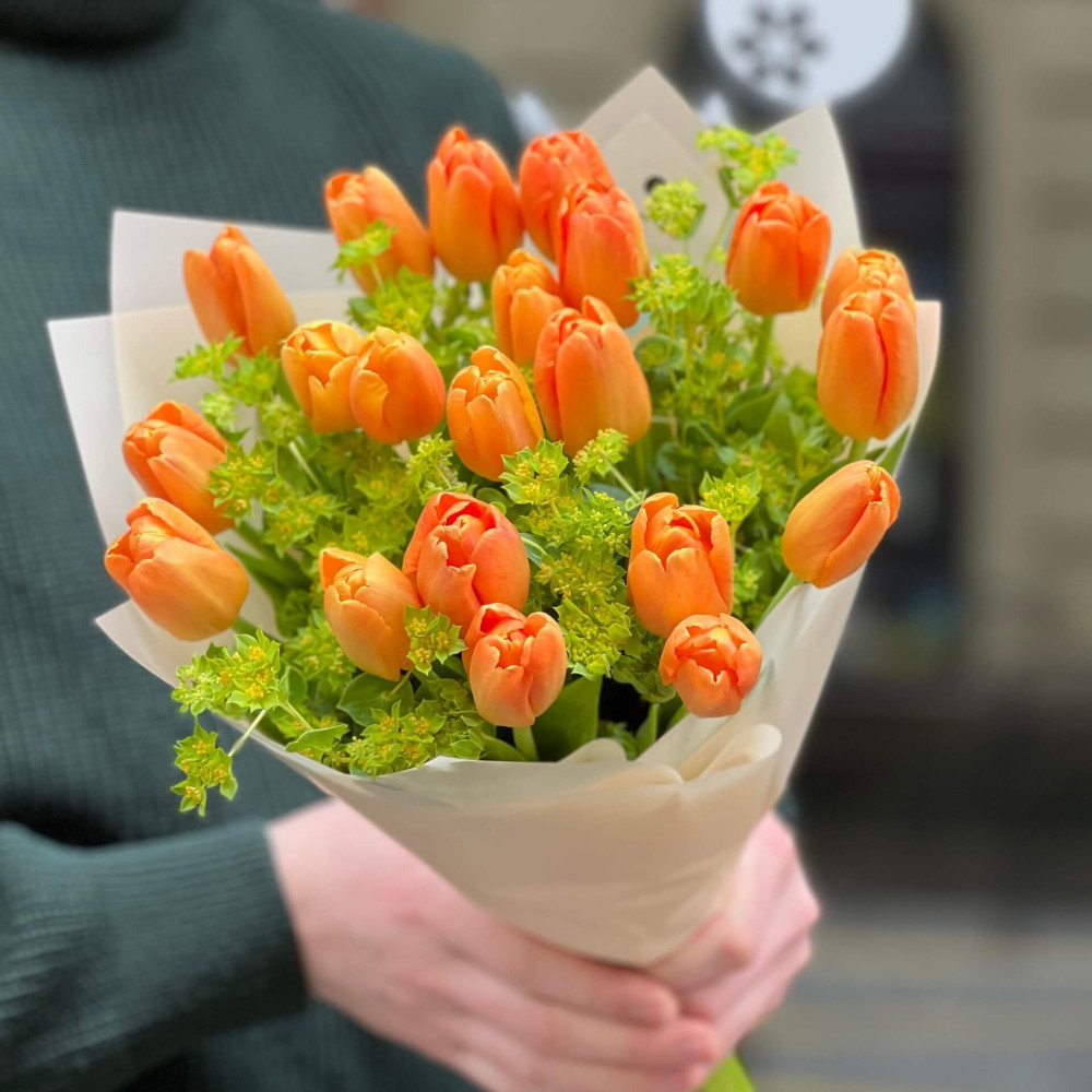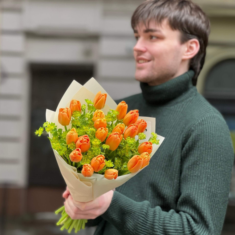 - Як замовити 21 помаранчевий тюльпан у букеті «Солодкий світанок»? ❯