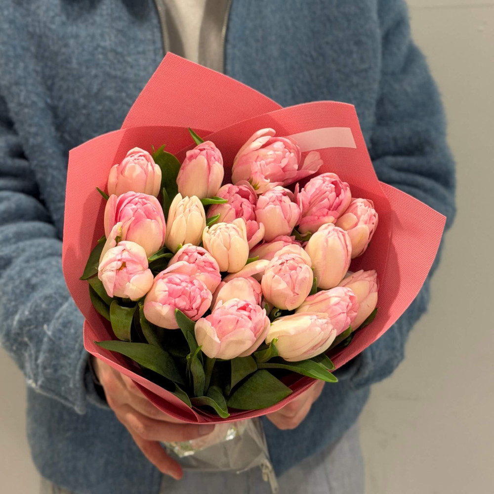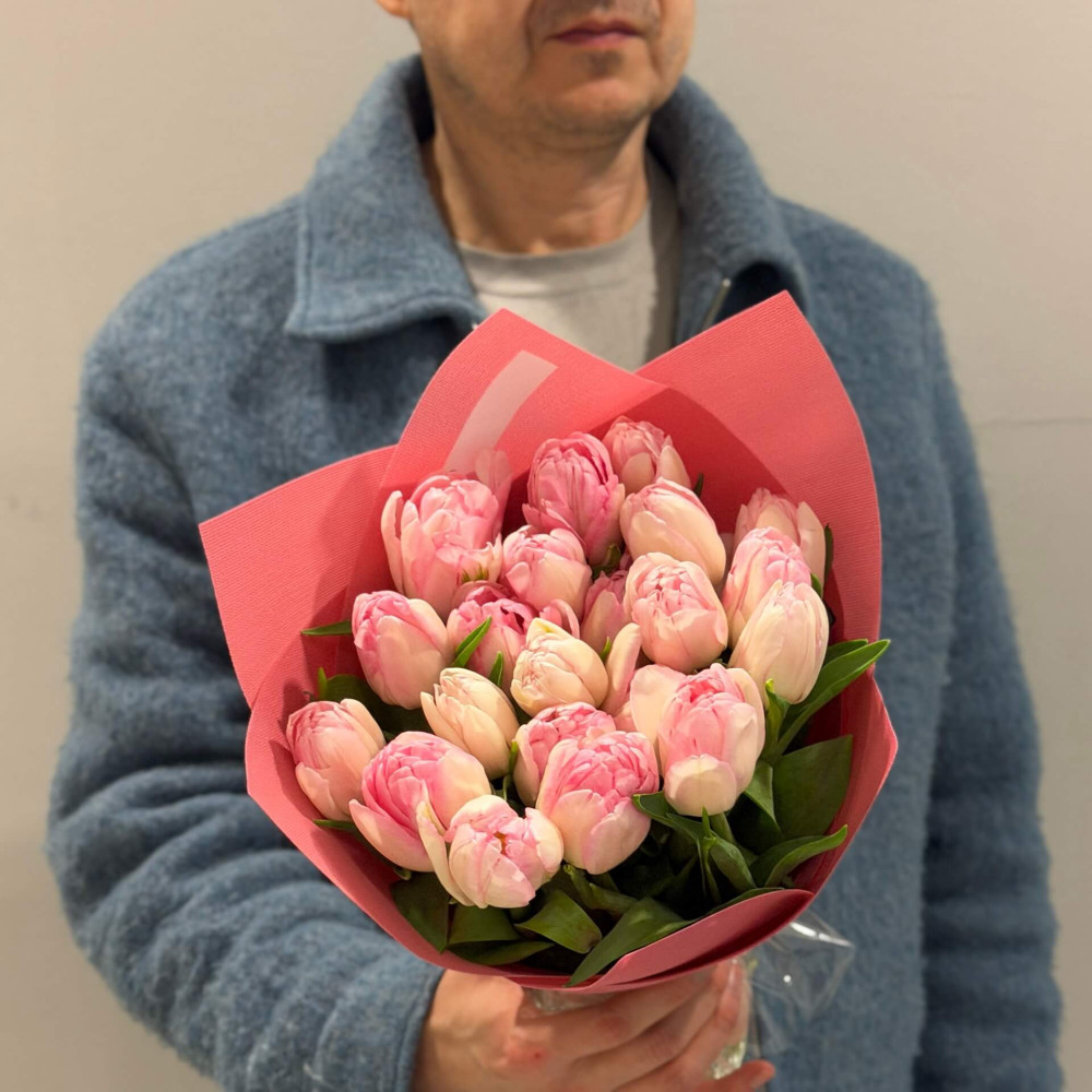 21 рожевий піоновидний тюльпан у букеті «Ілюзія»