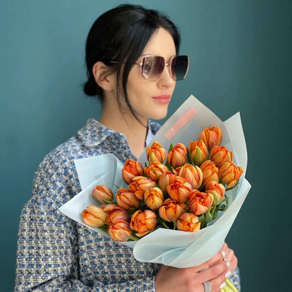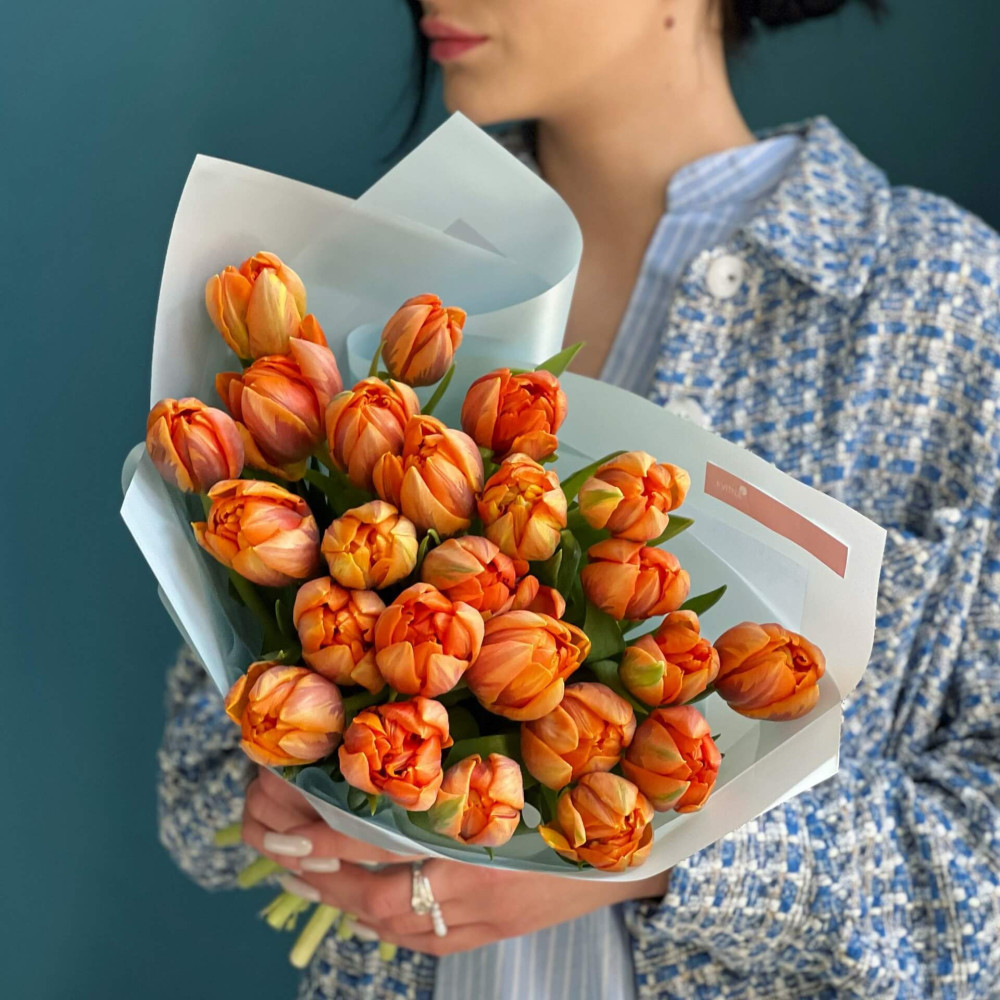 - Як замовити 23 піоновидних тюльпана у букеті «Помаранчевий світанок»? ❯