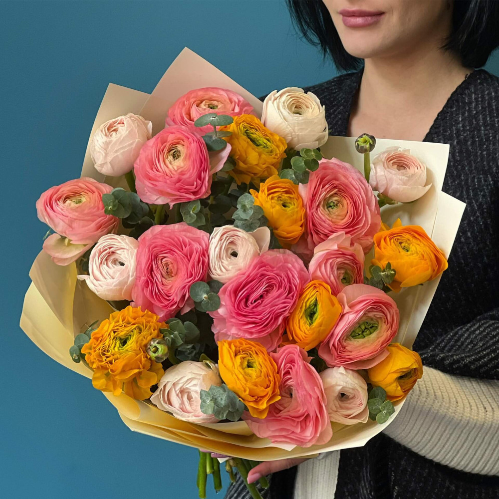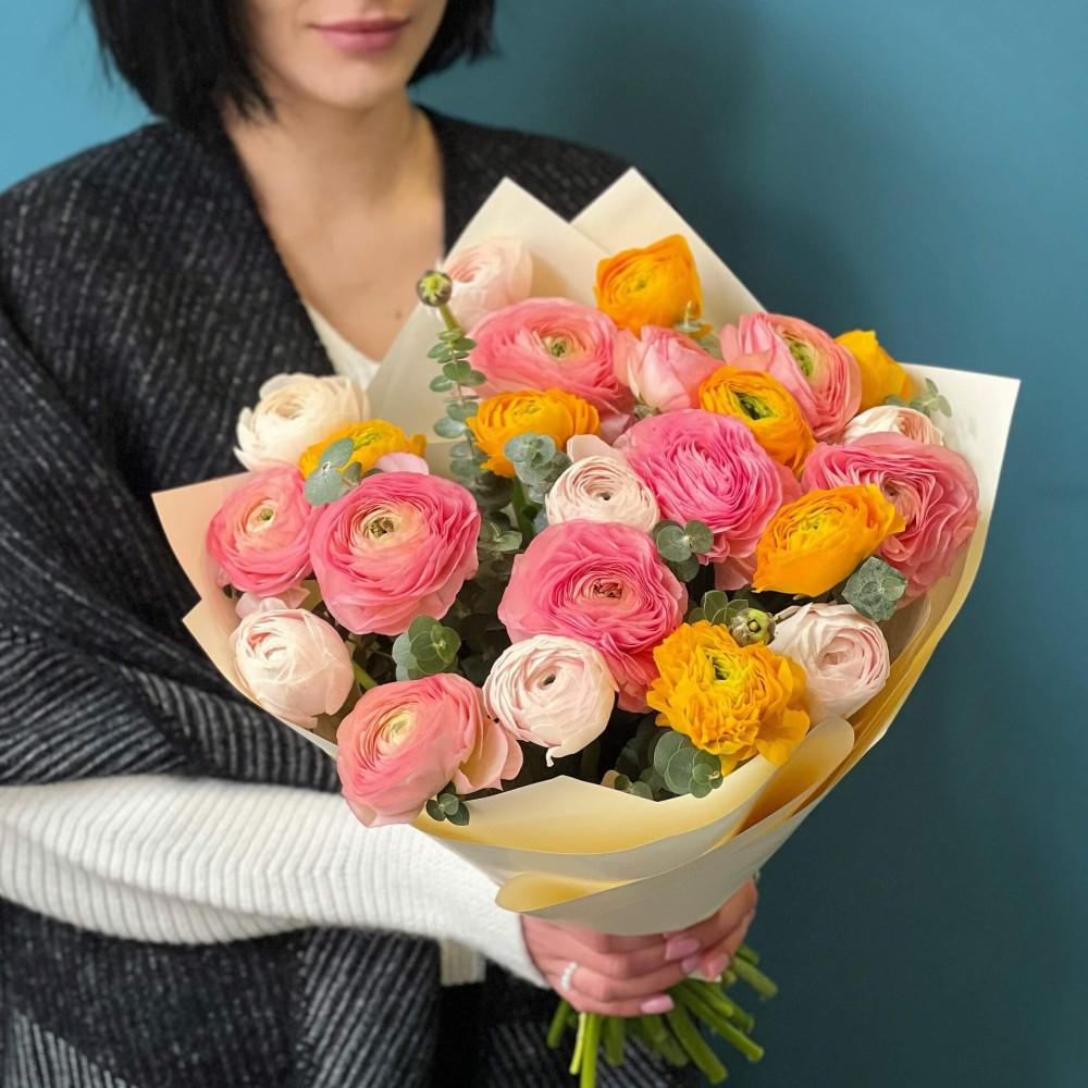 - Як замовити 23 ранункулюси мікс у букеті «Кольорові макарунси»? ❯