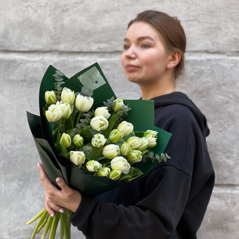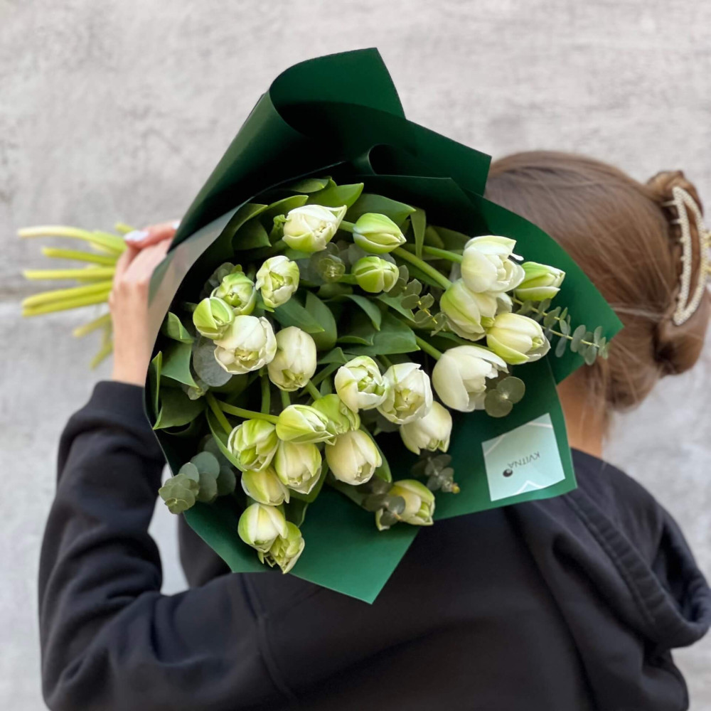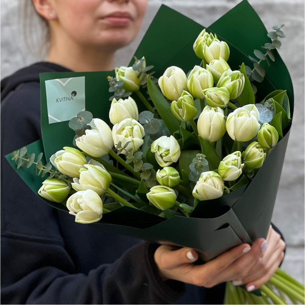 - Як замовити 25 біло-зелених півонієвидних тюльпанів у букеті «Весняний смарагд»? ❯