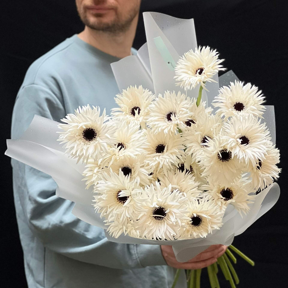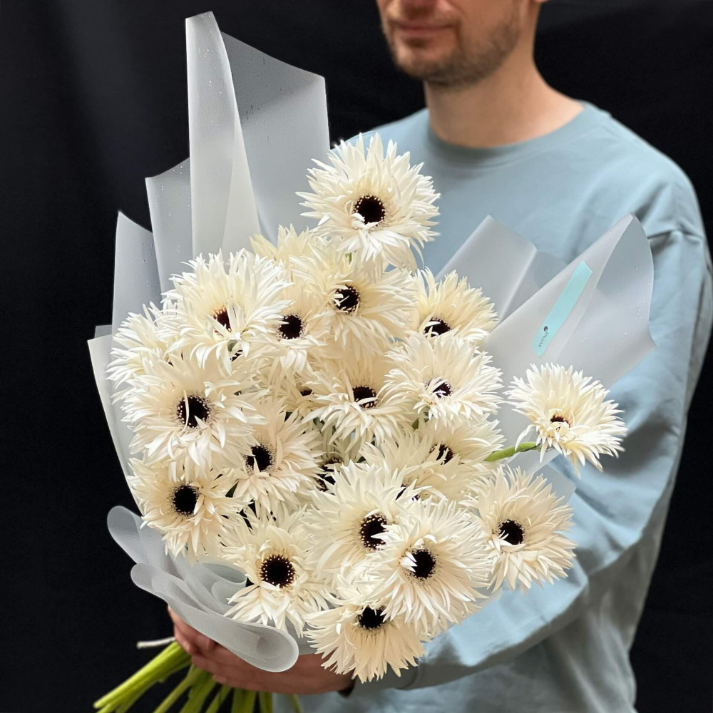 Пухнасті гербери немов розкішне страусине перо – такі ж повітряні, легкі та мереживні. Попри свою тендітність вони витривалі і подарують тобі чимало чудових моментів та емоцій.