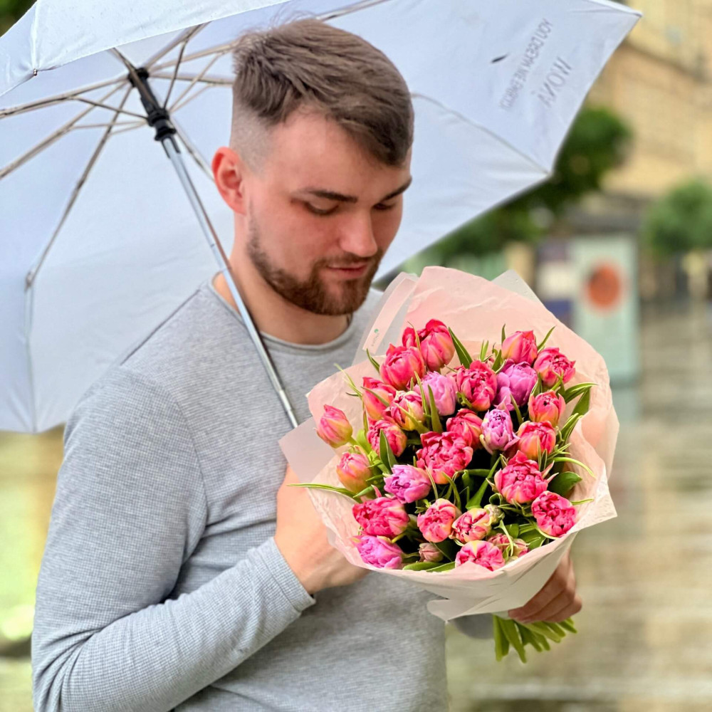 - Як замовити 25 піоновидних тюльпанів у букеті «Солоденькі барбариски»? ❯