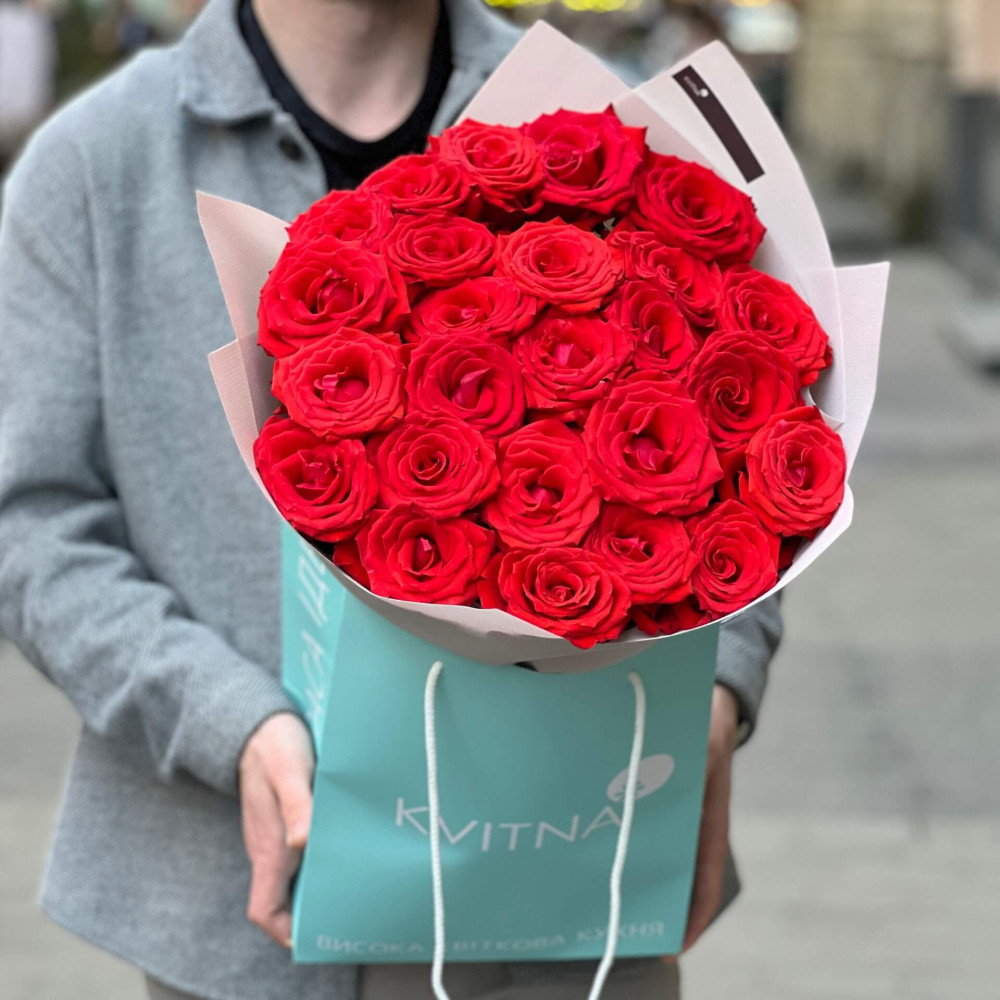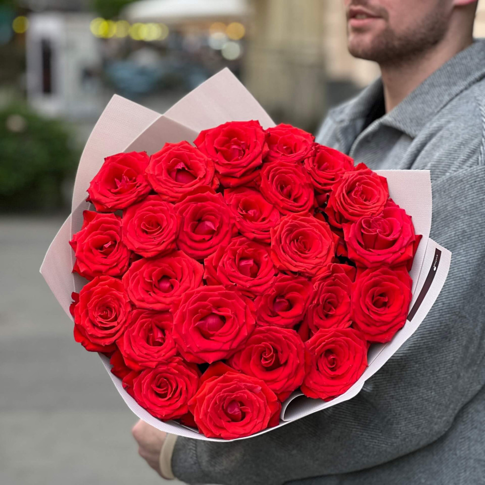 - Як замовити 25 розкішних яскраво-червоних троянд Nina? ❯