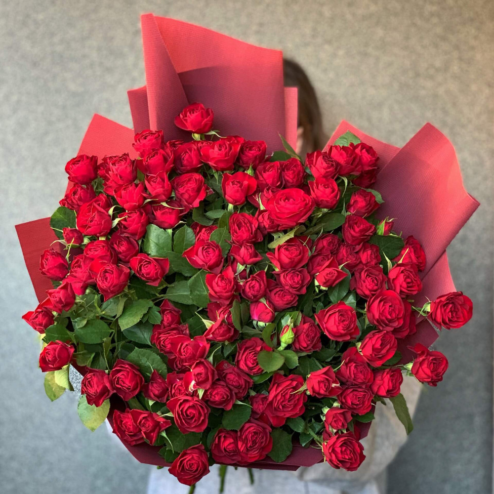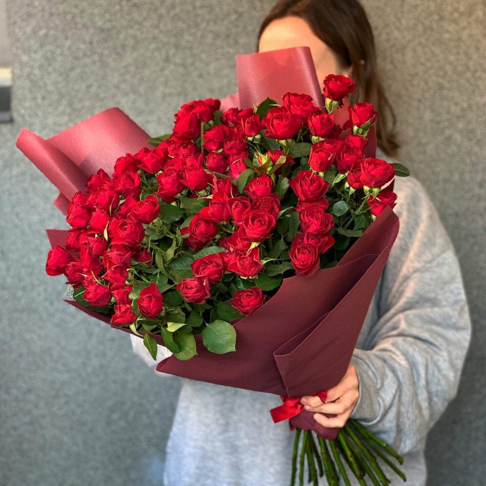 - Як замовити 29 гілок кущової піоновидної троянди у букеті «Цілуй мене»? ❯