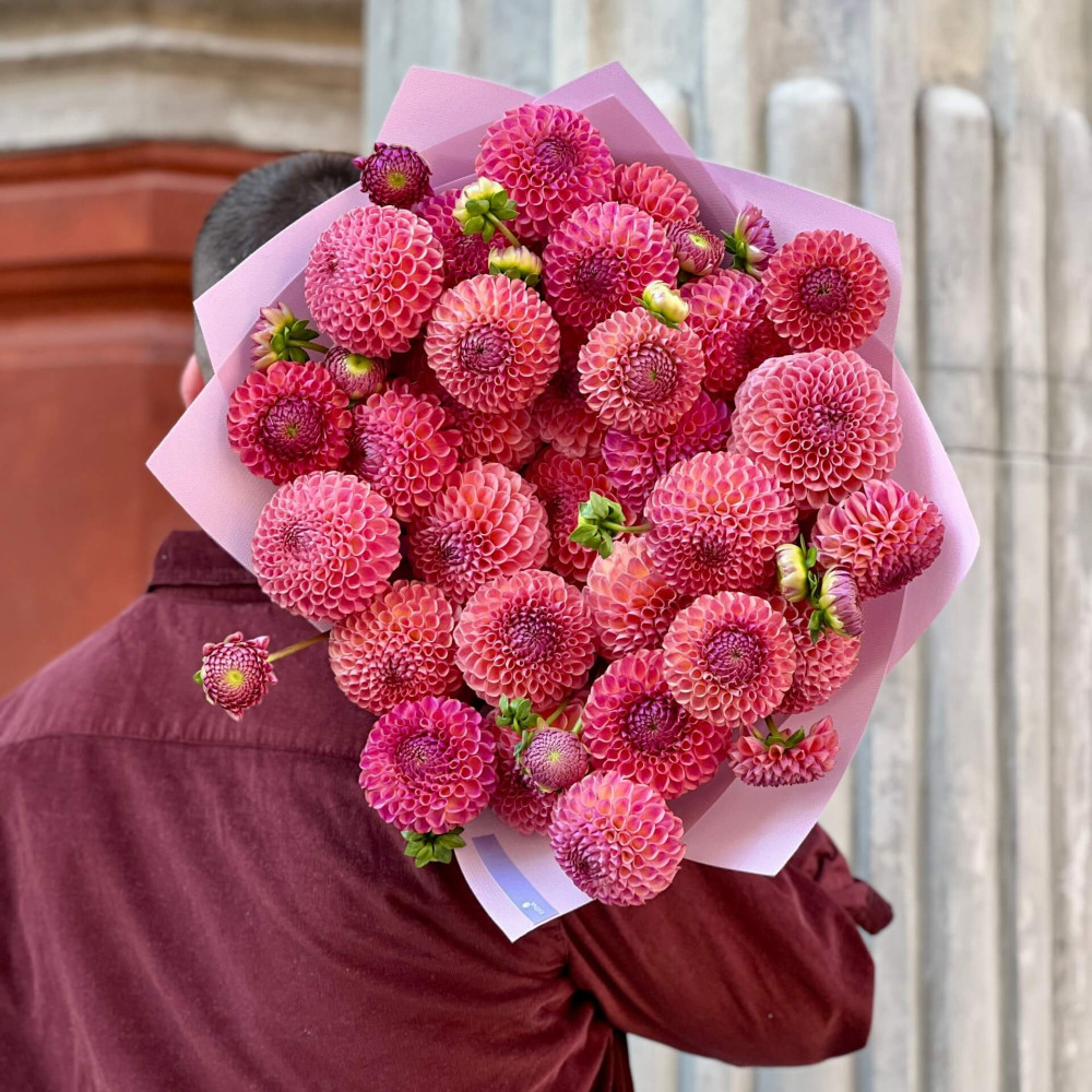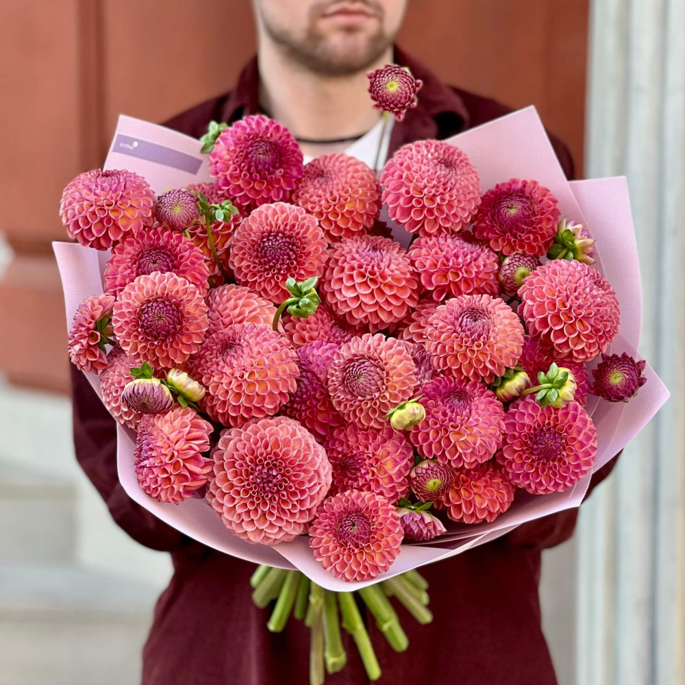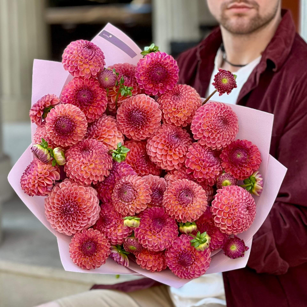 - Як замовити 29 жоржин сорту Caitlin’s Joy у букеті «Аметринове намисто»? ❯
