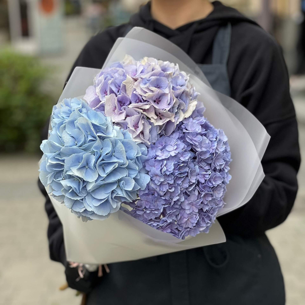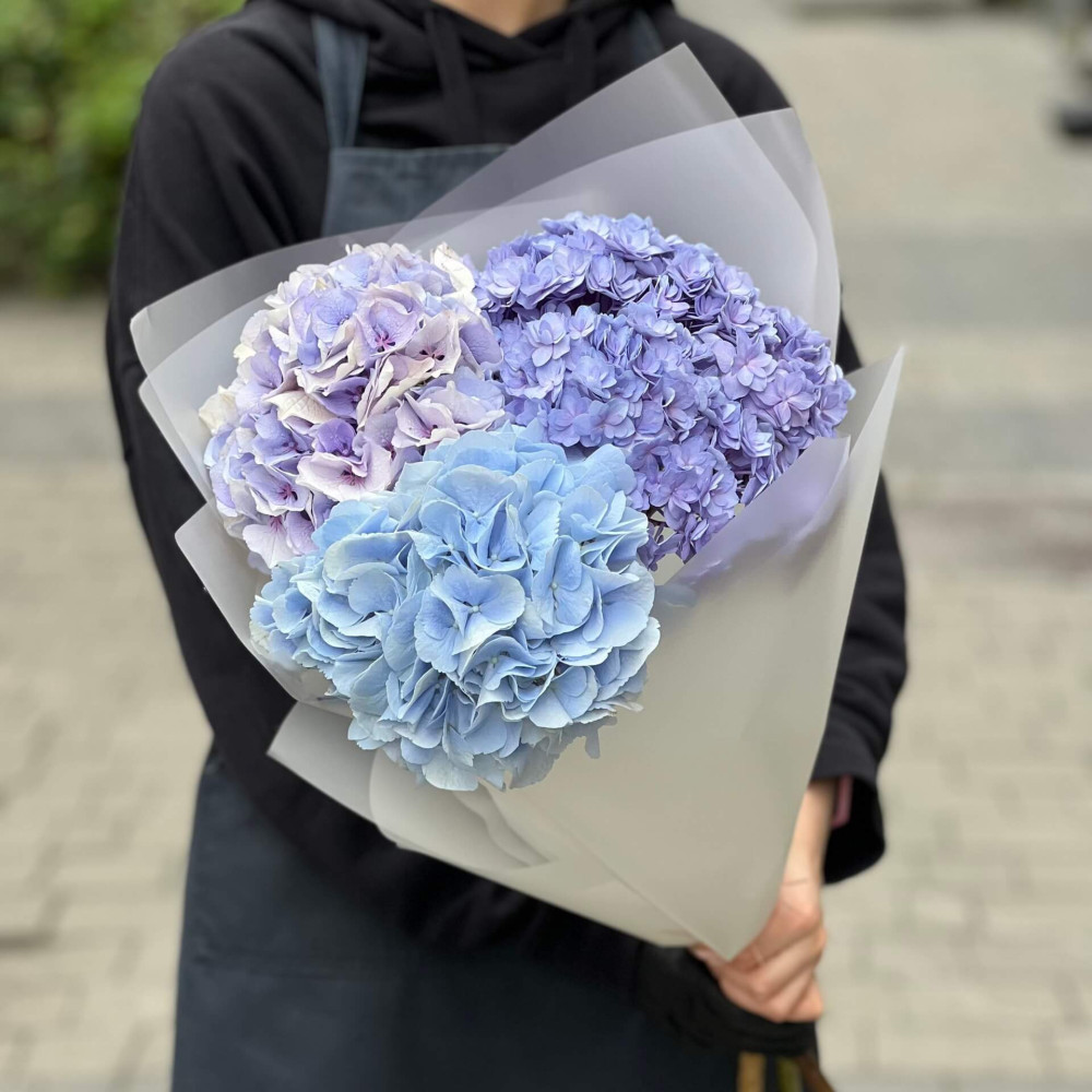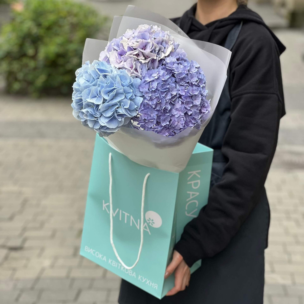 - Як замовити 3 гортензії у букеті «Синій небокрай»? ❯