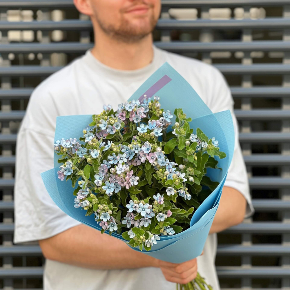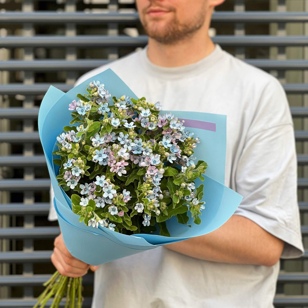 Блакитний колір – незвичайний та рідкісний. А коли цей колір втілюється в оксіпеталумі – це сама досконалість. Розсип блакитних зірочок в одному букеті! Ціла галактика!