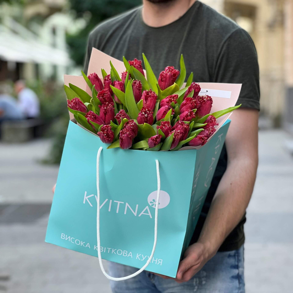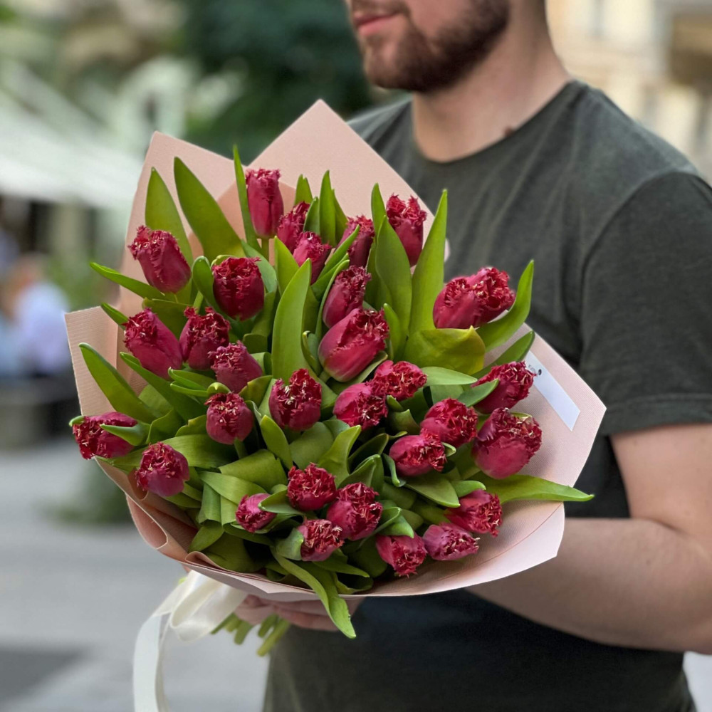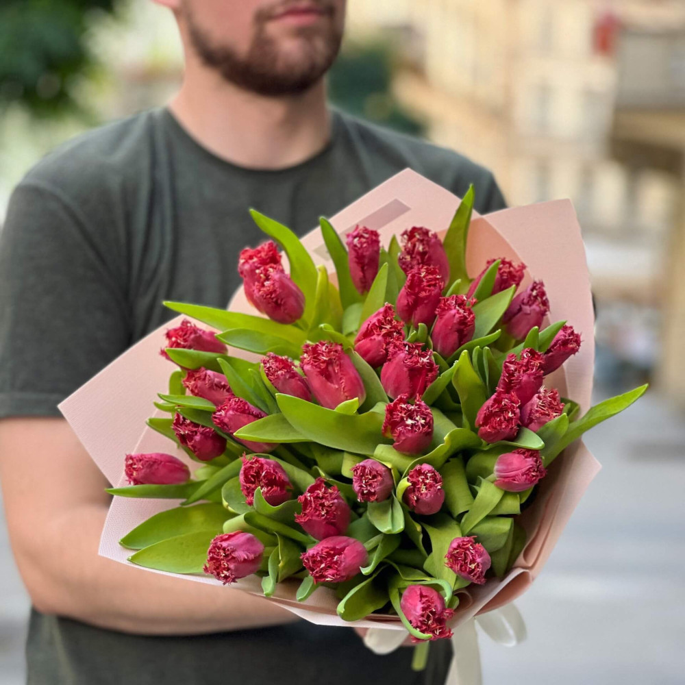 - Як замовити 31 тюльпан у букеті «Бахромчастий тюльпан»? ❯