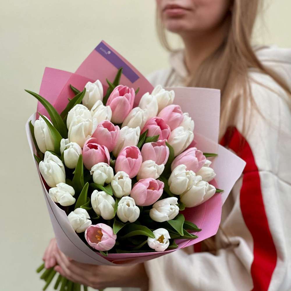 - Як замовити 35 ніжних класичних тюльпанів у букеті «Делікатне сяйво»? ❯
