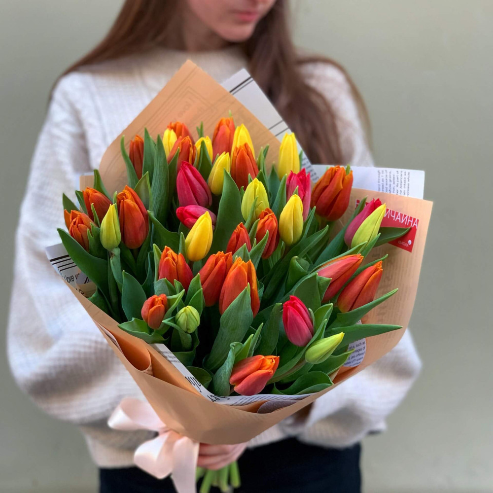 - Як замовити 35 різнокольорових тюльпанів «Щира посмішка»? ❯