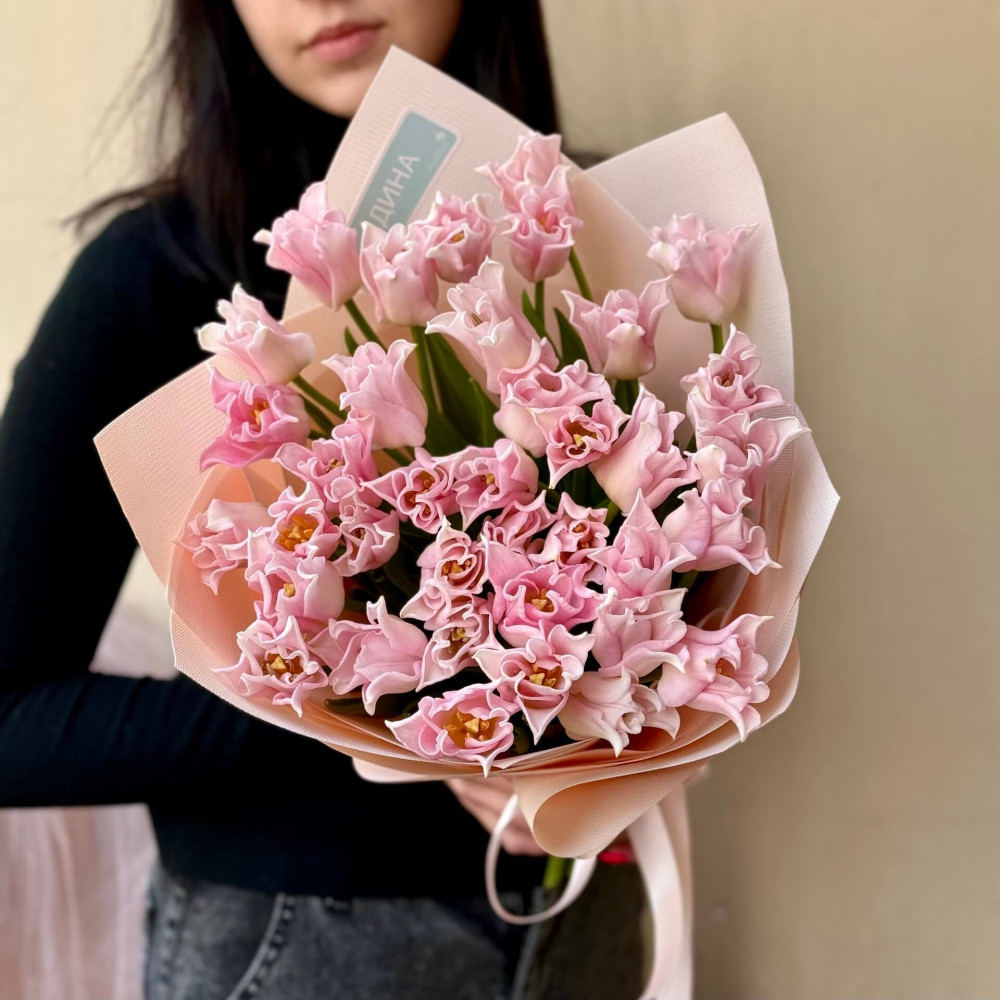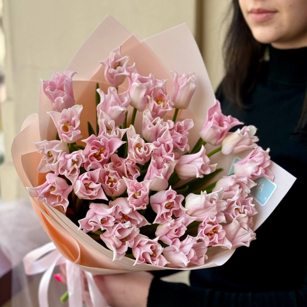 Рожеві тюльпани сортосерії Поцілунок навіюють романтичний настрій. Обійми кохану і подаруй їй весну у квітах!