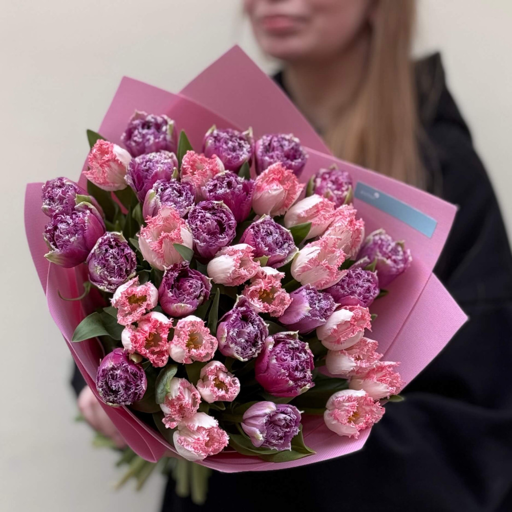- Як замовити 39 бахромчастих тюльпанів у букеті «Ягідний сорбет»? ❯